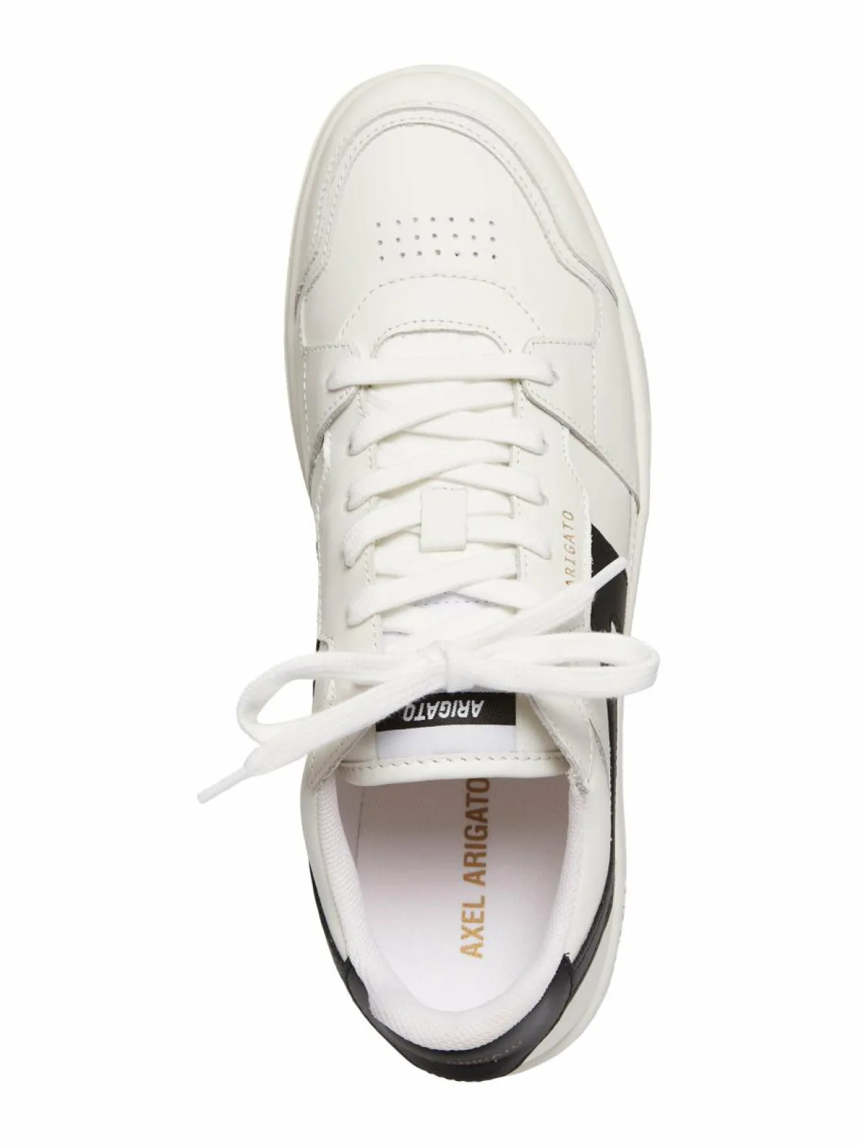 Axel Arigaton Dice-A -sneakerien päällisessä on kontrastinen, nahkapaneeleista koostuva ilme. Sivulta ja takaa löytyvät kullansävyiset logotekstit. Kuminen ulkopohja antaa vakaan pidon. Kiinnitetään nauhoilla.