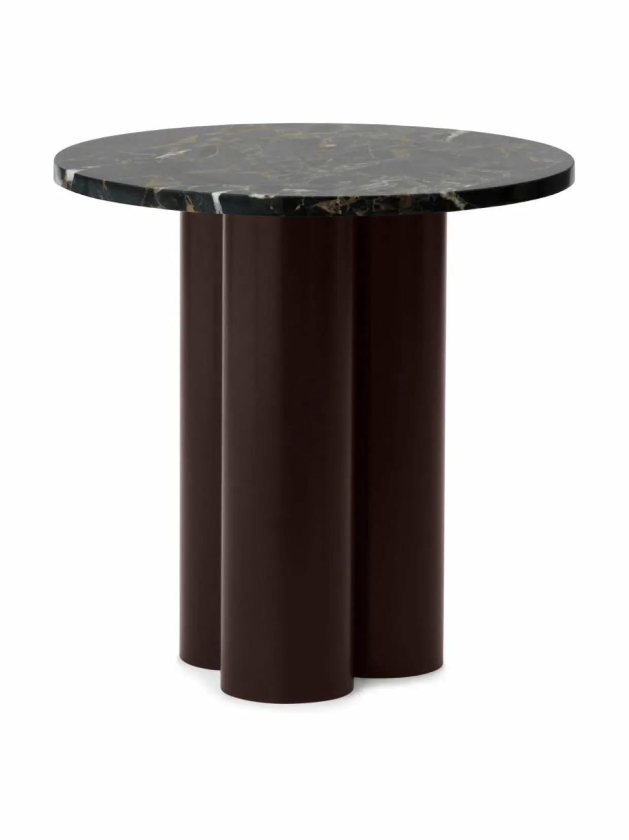 Normann Copenhagenin Dit on yksinkertaisen elegantti sivupöytä. Sen kivipintainen yläosa lisää hienostuneisuutta ja tuo luonnonläheisyyttä sisustukseesi. Jauhemaalatut teräsjalat takaavat pöydän kestävyyden ja vakauden, tehden siitä monikäyttöisen ja pitkäikäisen valinnan. Massiiviset, sylinterinmuotoiset jalat antavat pöydälle lisää persoonallisuutta ja vetovoimaa.