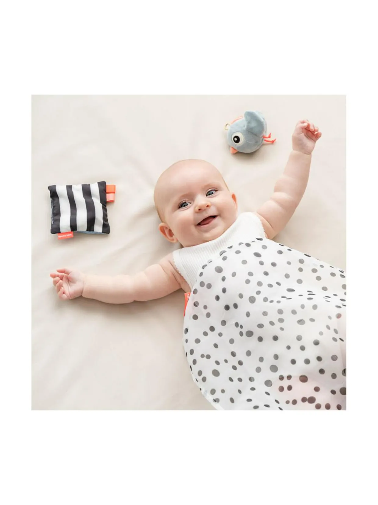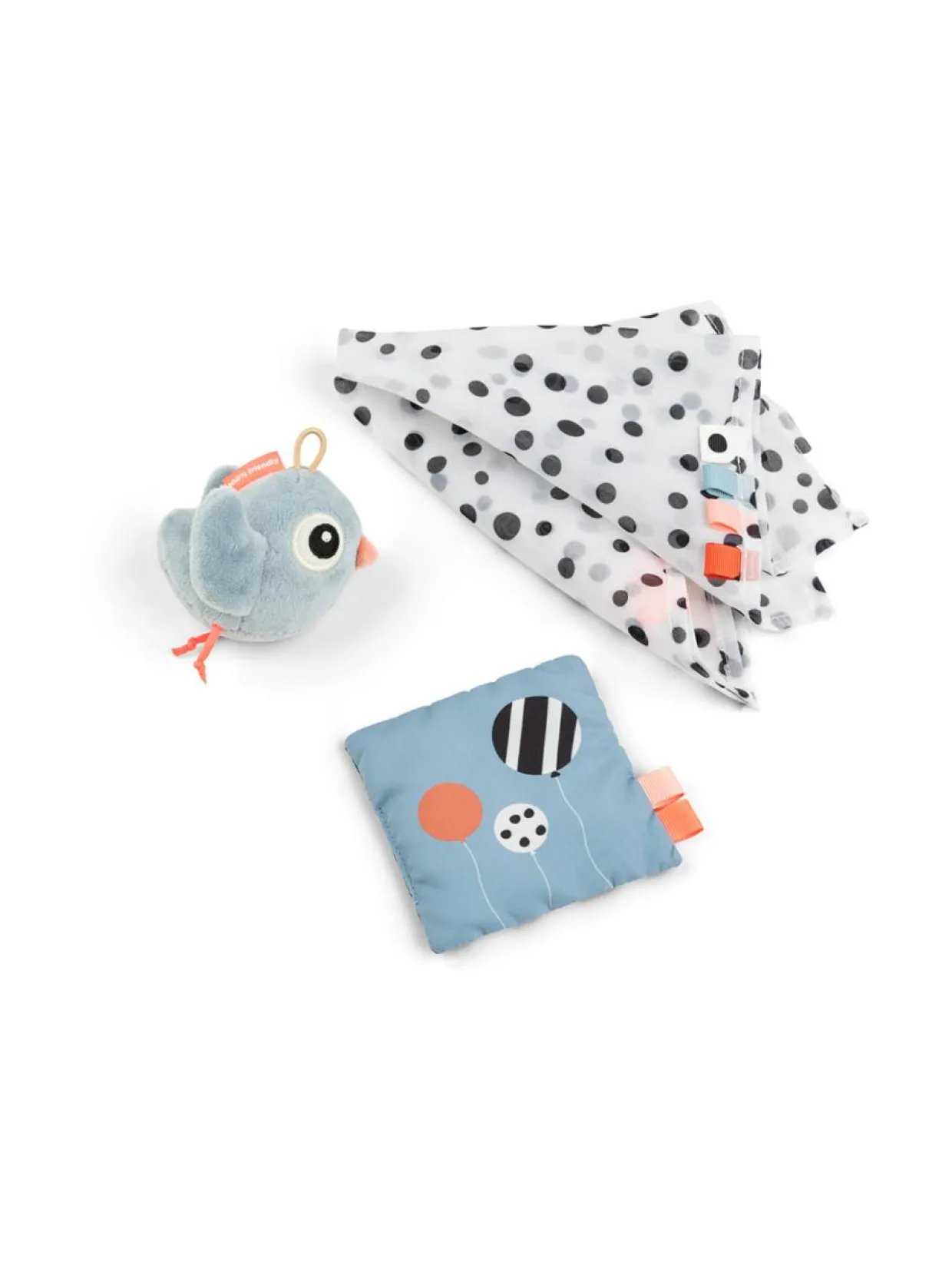 Done by Deer aktiviteettilelusetti sisältää helistimen, hernepussin sekä liinan. Helistimen saa roikkumaan kätevästi esim. vaunuihin tai turvakaukaloon, ja liinan kanssa voi leikkiä hauskoja kurkistus-leikkejä. Lapsen kasvaessa hernepussia voi heitellä edestakaisin, joka kehittää lapsen käsi-silmä-koordinaatiota. Lisätietoja: