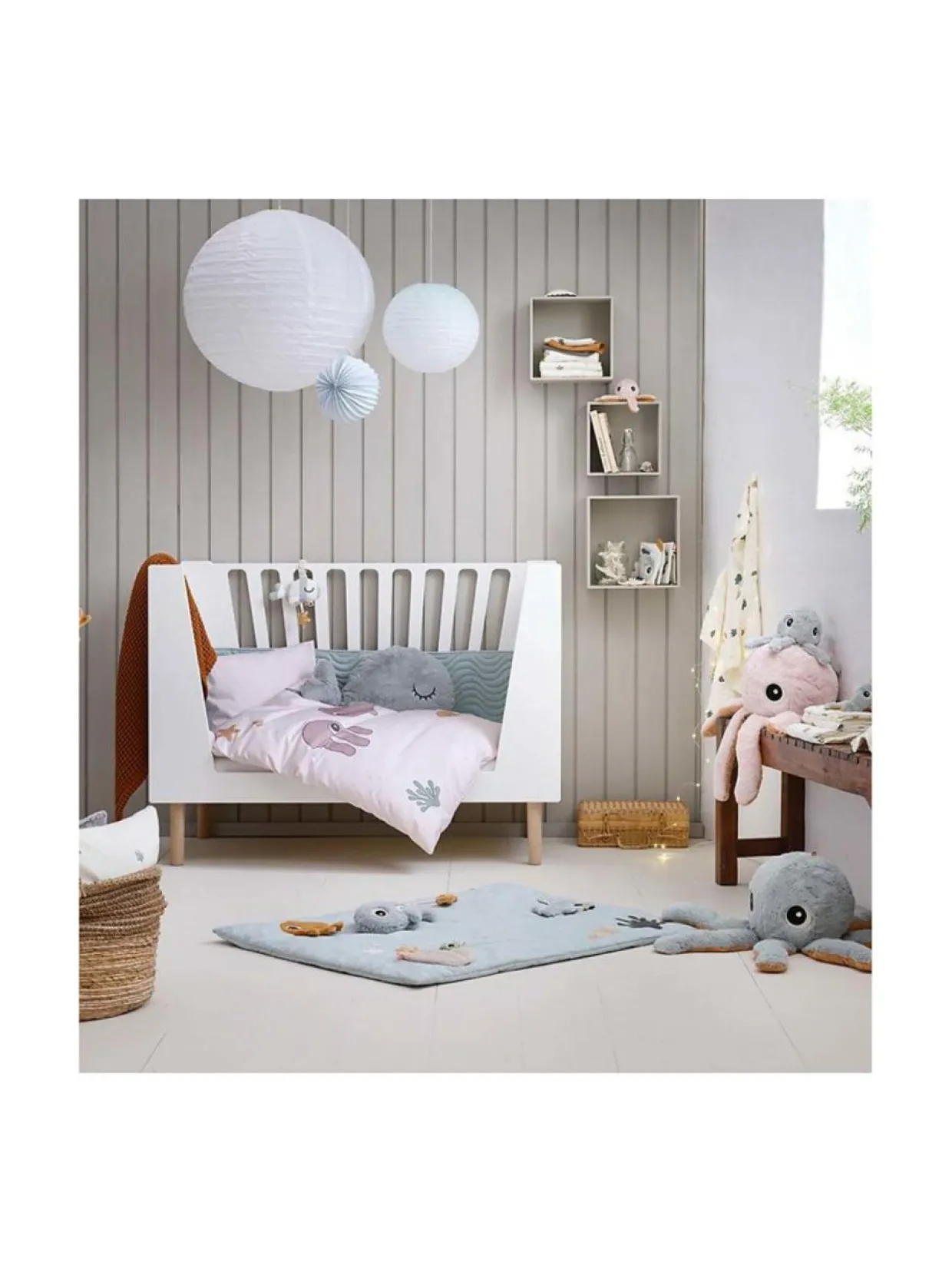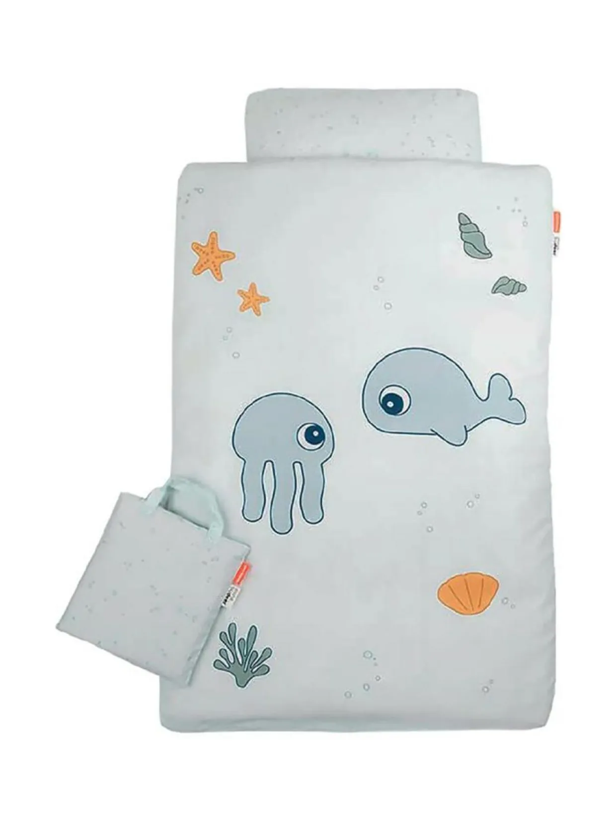 Done by Deer Jelly & Wally lakanasetti Junior 100 x 140 cm, on suloinen ja pehmeä pussilakanasetti. Lakanassa seikkailevat Jelly ja Wally merenalaisissa tunnelmissa. Pakettiin sisältyy pussilakana ja tyynyliina. Vetoketju on piilotettu.