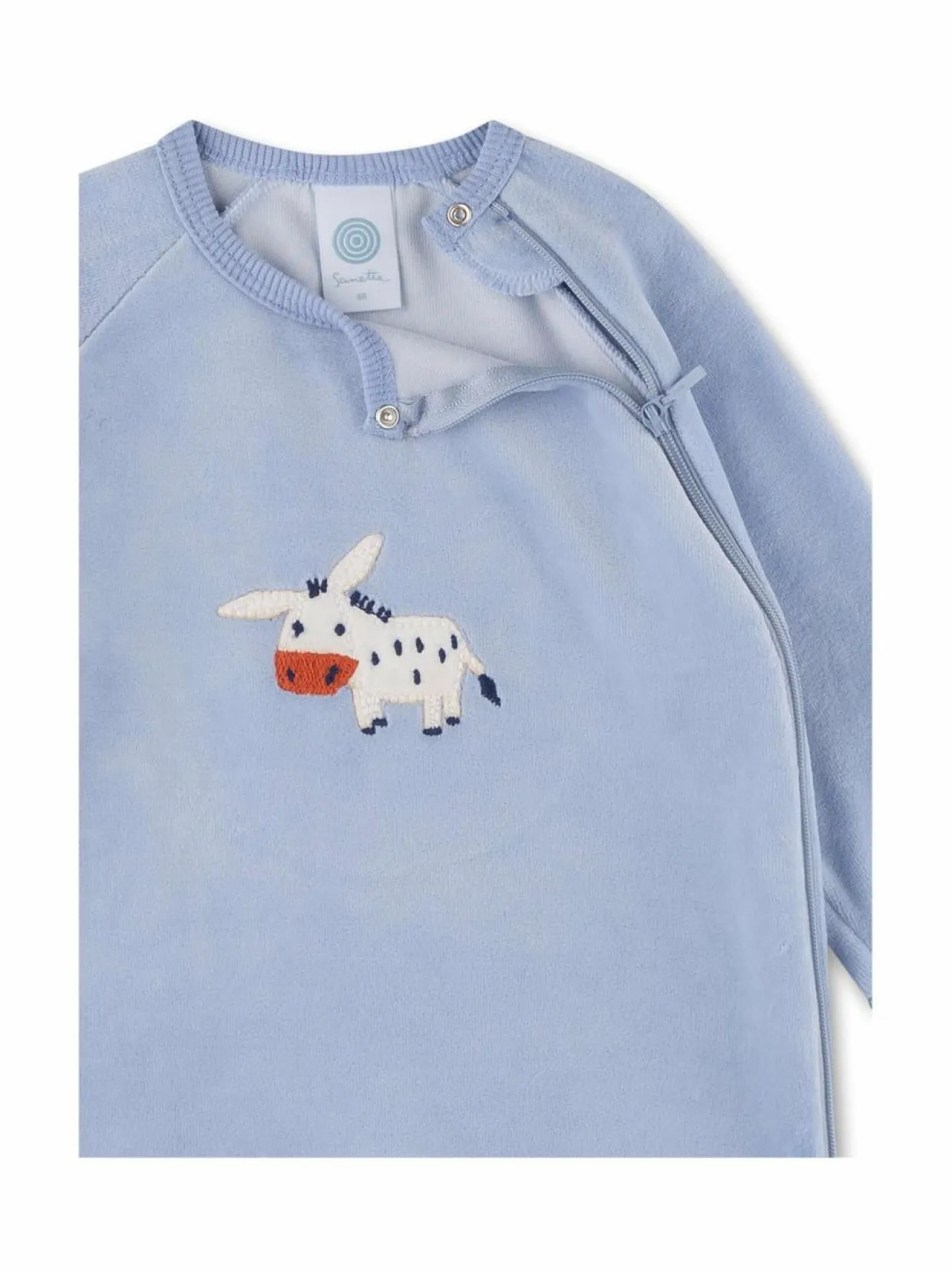 Sanetta Donkey -potkupuku on täydellinen vauvallesi viileämpinä päivinä. Tämä veluurista valmistettu haalari tuntuu miellyttävältä ihoa vasten ja pitää lapsen mukavasti lämpimänä. Haalarissa on suloinen aasikuviointi rinnassa sekä käytännöllinen vetoketju, joka helpottaa pukemista. Potkupuku pitää pienet varpaat suojassa ilman erillisiä sukkia.