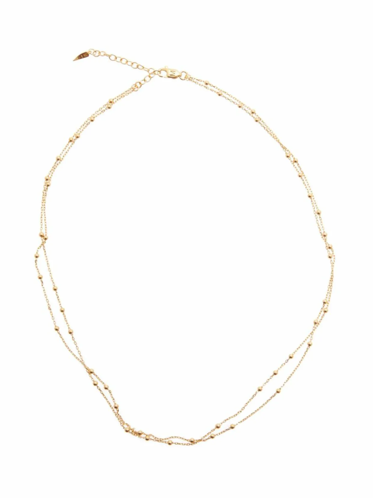 Elegantti Missoman kaulakoru, jossa on kaksinkertainen ketju. Valmistettu kiiltävästä 18k kullatusta kierrätetystä hopeasta. Kiinnitys logollisella rapulukolla. Tämä koru sopii erinomaisesti arkeen sekä juhlaan, ja sen ajaton muotoilu korostaa minkä tahansa asukokonaisuuden.