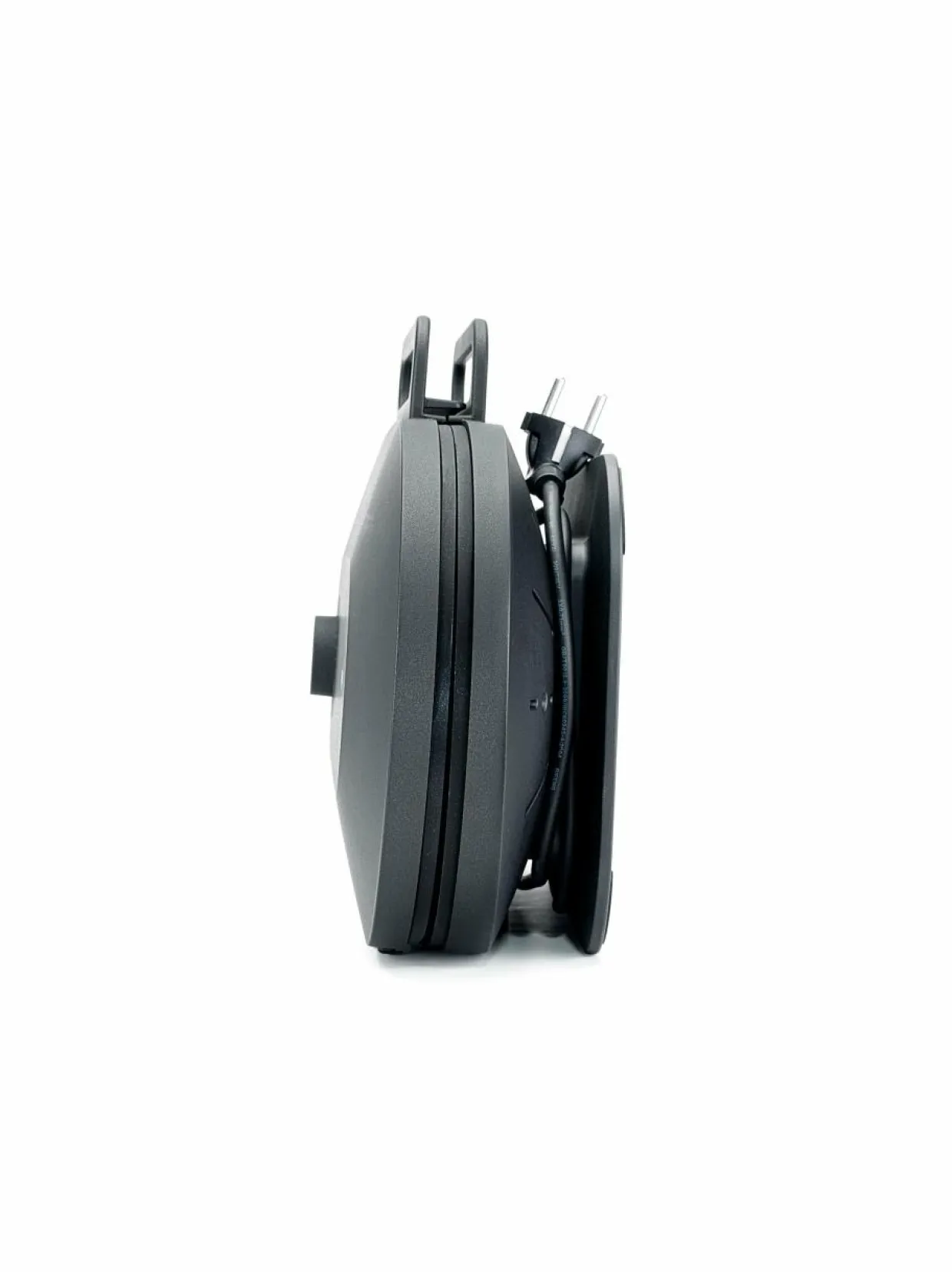 - Vohvelirautaa voi säilyttää pystyasennossa, mikä säästää arvokasta kaappitilaa keittiössäsi. Raudan korkeus pystyasennossa on noin 25,5 cm.