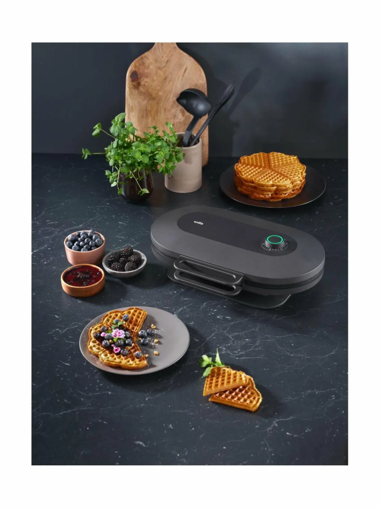 Wilfan Double Joy -vohvelirauta valmistaa ihanan rapeat, herkulliset ja täydellisesti paistetut vohvelit kerta toisensa jälkeen. Kerralla saat 2 x 5 vohvelisydäntä, ja yhden vohvelin halkaisija on 20 cm.