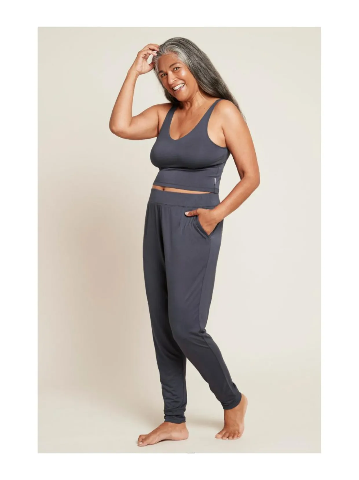 Joustavat, tyylikkäät ja kestävät Downtime Lounge housumme ovat ihanat rentoihin viikonlopun päiviin kuin myös kiireisiin arkipäiviin. Leveä vyötäröresori ja rento istuvuus tekevät näistä naisten loungehousuista miellyttävät ja istuvat hyvin päällä. Housuissa on kapeneva lahkeensu, jossa myös resorit nilkoissa. Bambukankaamme säilyttää muotonsa ja sopii erinomaisesti herkälle iholle, sillä bambukuidut ovat luonnostaan sileitä ja pyöreitä, eikä ne ärsytä ihoa. Rentoudu näissä rennon tyylisissä lounge-housuissa! Saatavilla väreissä Black ja Storm (siniharmaa).