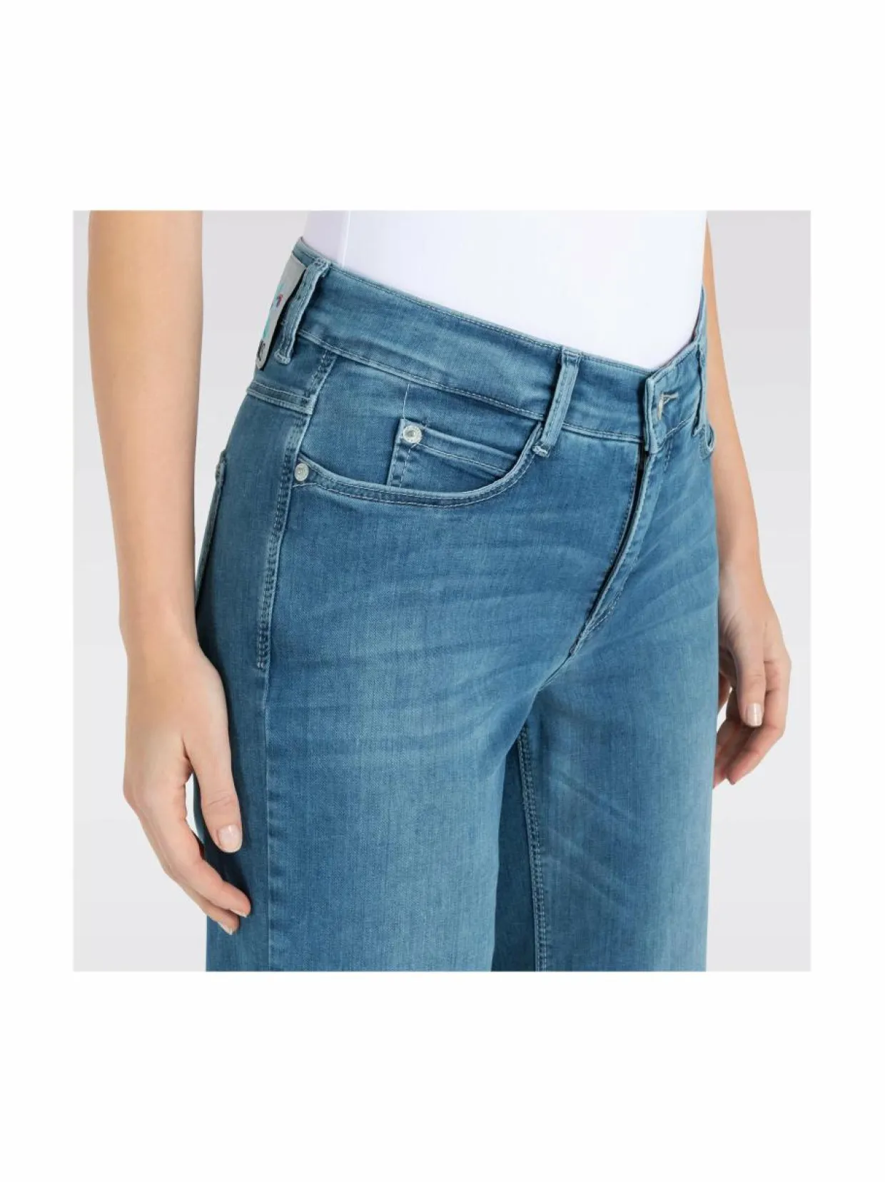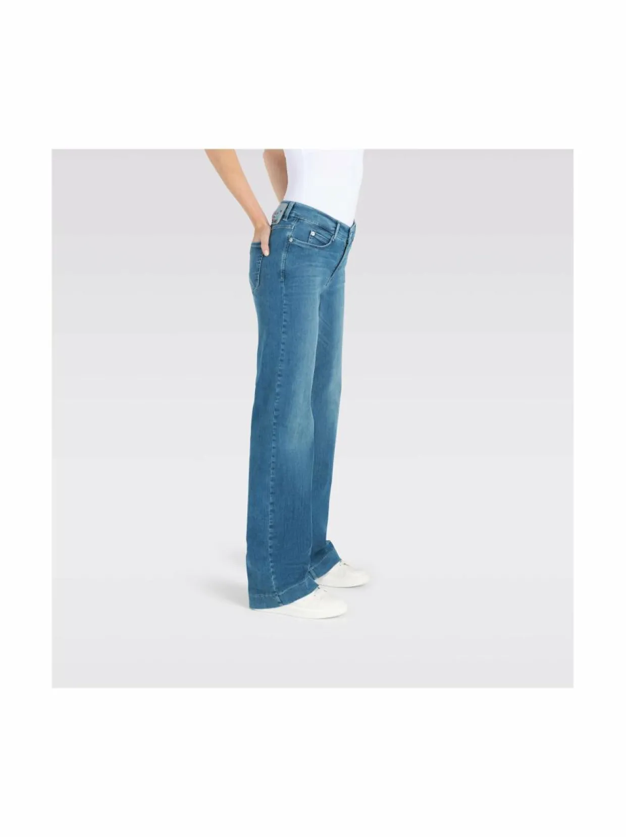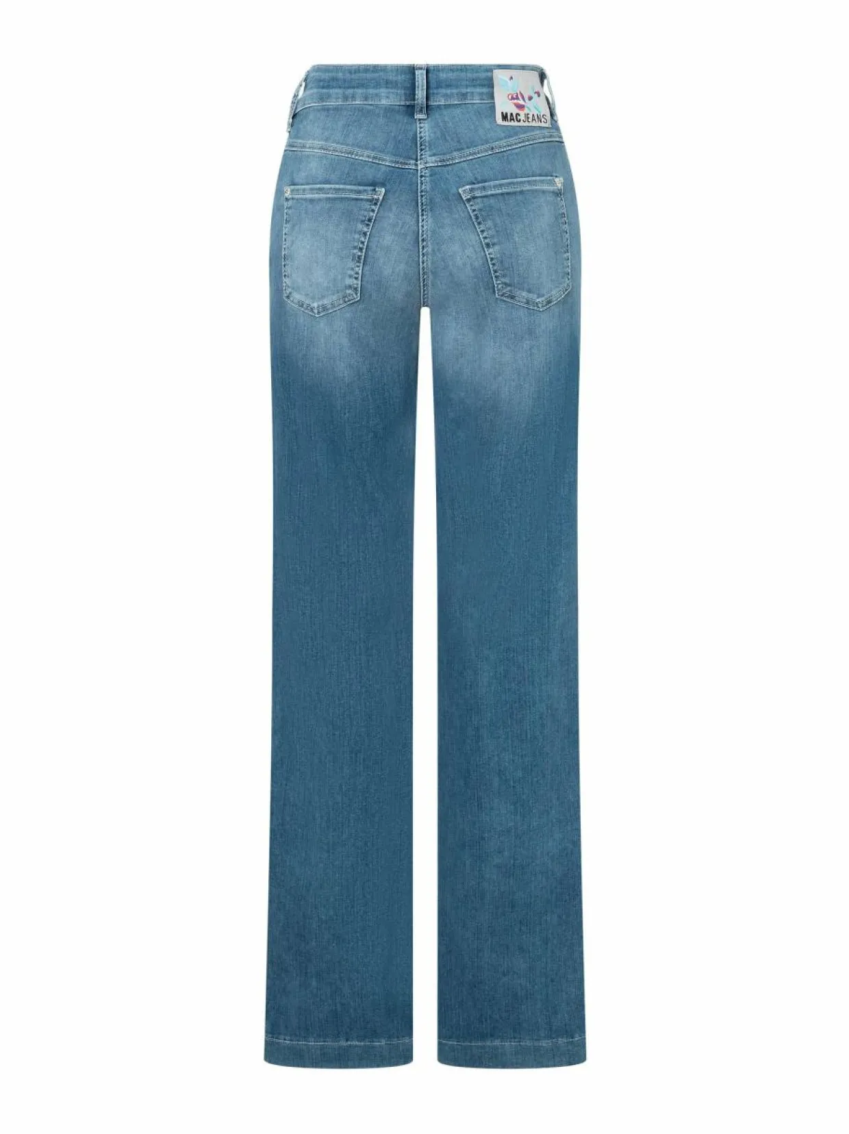 Mac Jeans tuotemerkin Dream Wide -farkut ovat mukavan joustavaa laatua. Ne ovat viisitaskumalliset ja niissä on trendikästä kulutusefektiä. Lahkeet ovat leveät ja suorat. Vyötärölinja on keskikorkea. Ne sopivat täydellisesti rentoon vapaa-ajan tyyliin ja ovat mukavat käyttää.