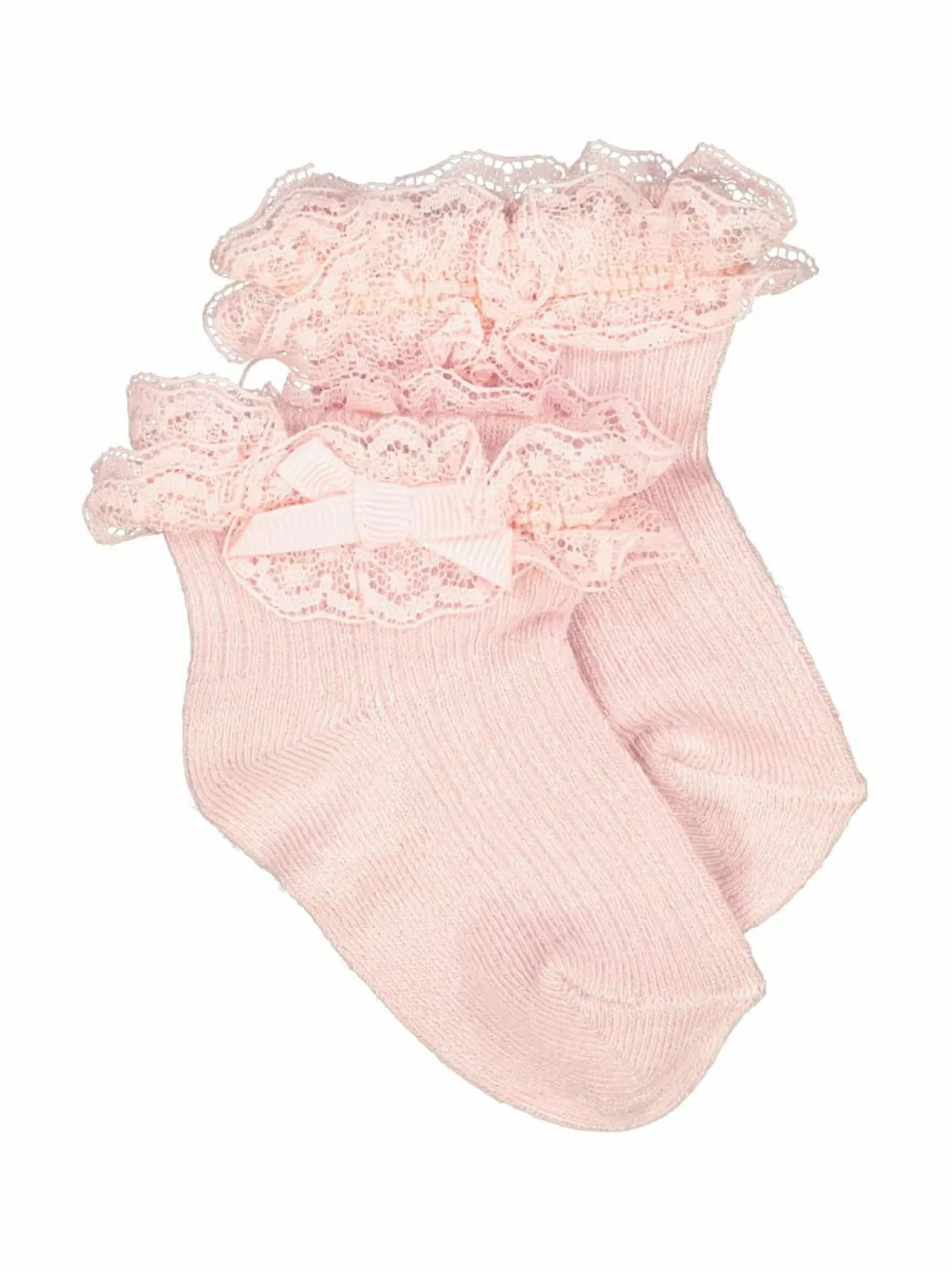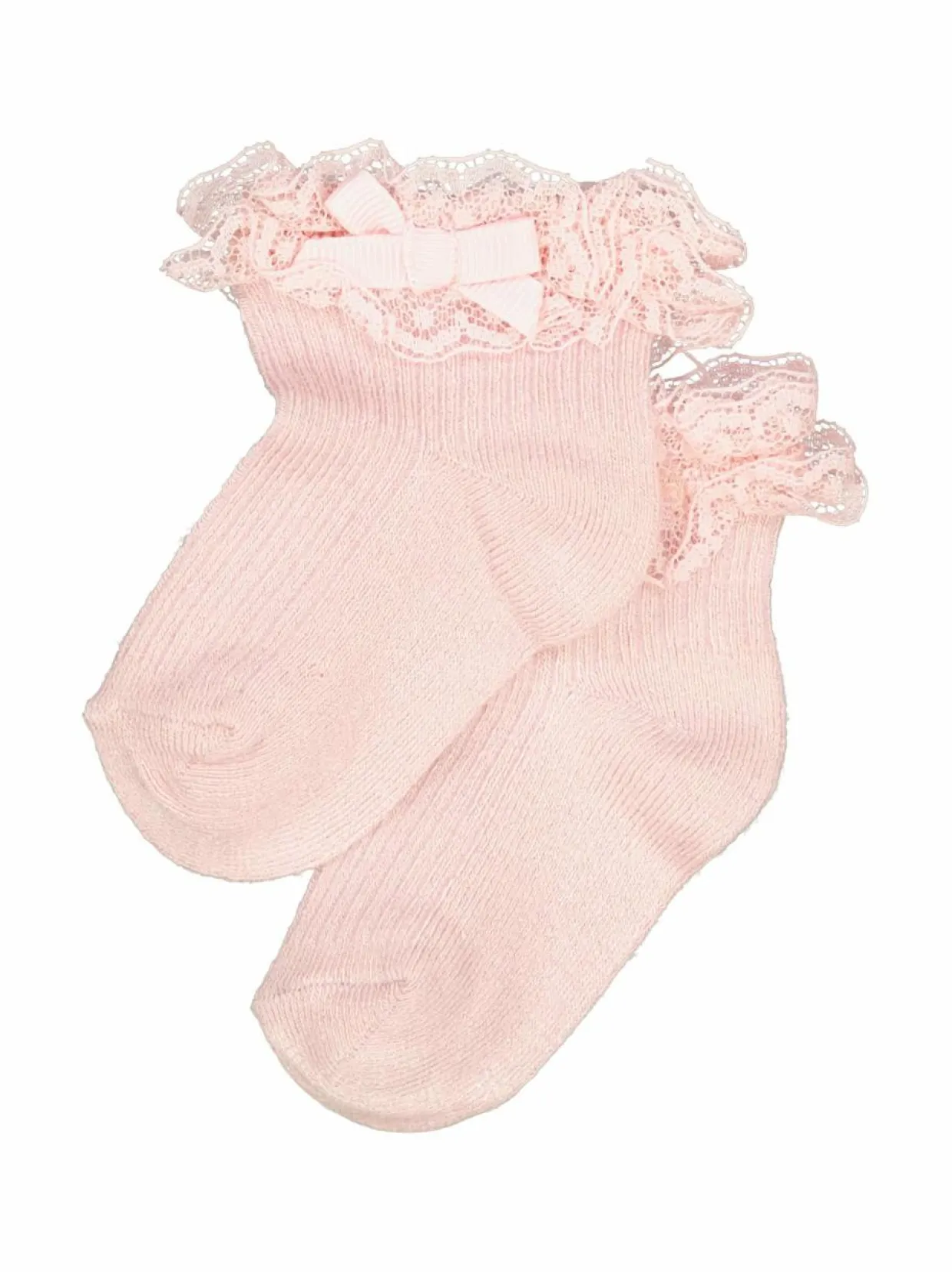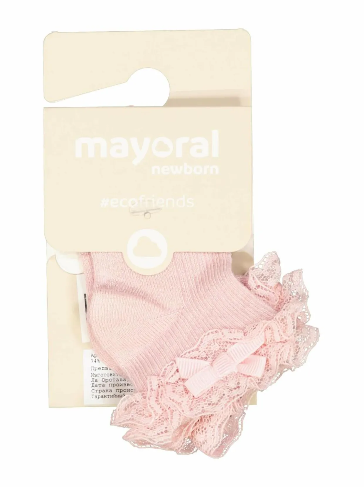 Mayoralin pitsi- ja rusettisomisteiset sukat perheen pienimmille. Materiaalina on käytetty pehmeän tuntuista ja joustavaa viskoosisekoitetta.