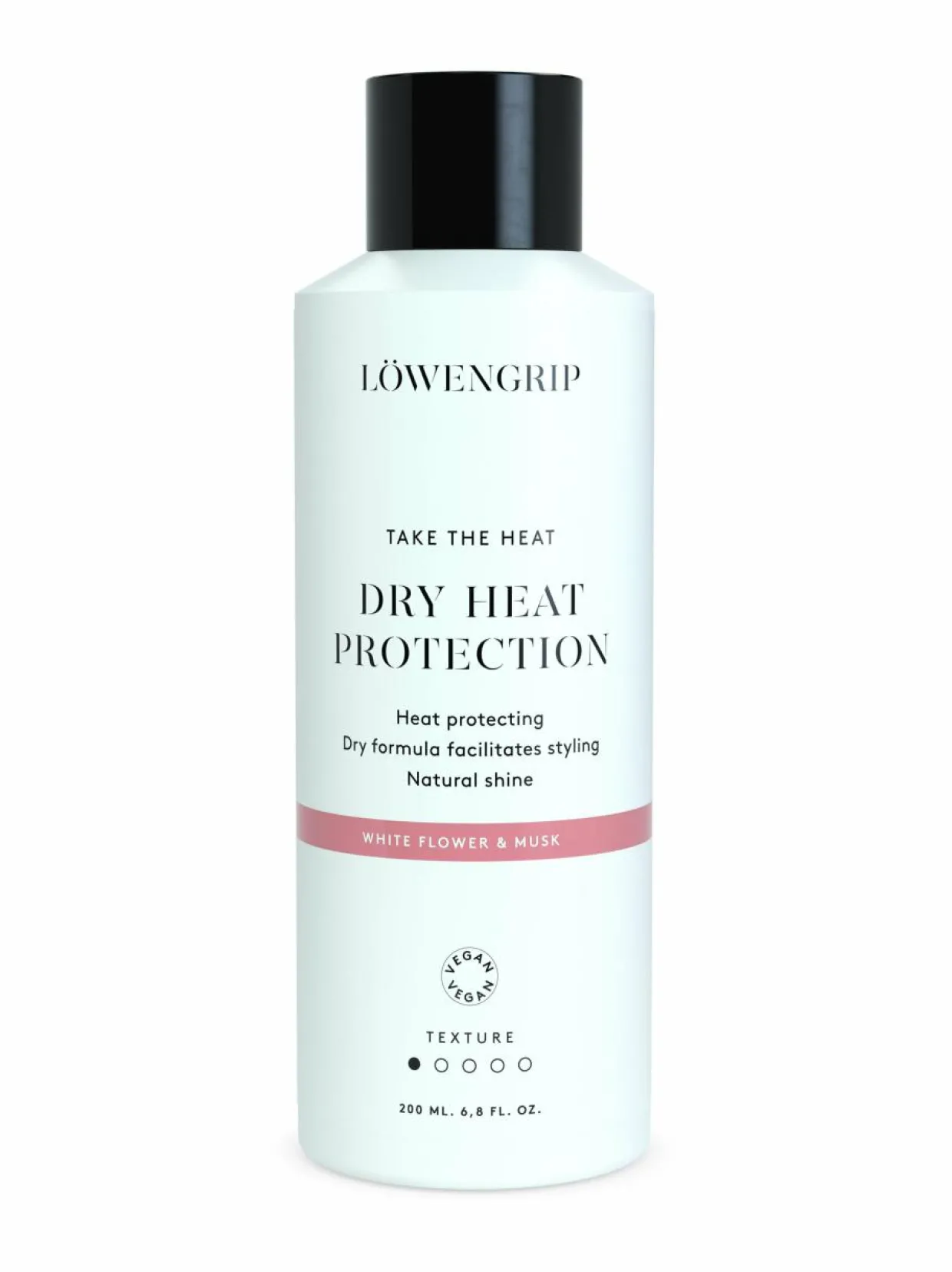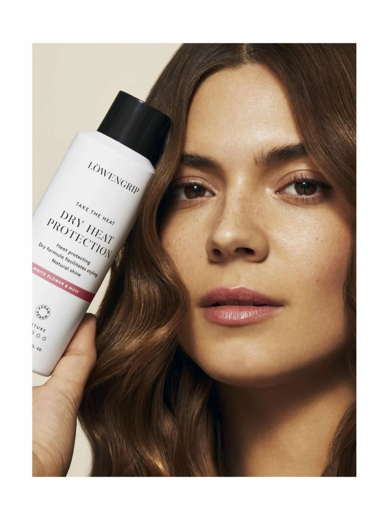 Löwengrip Take The Heat – Dry Heat Protection on lämpösuoja kuivalla koostumuksella, joka antaa hiuksille täydellisen suojan kuumuutta vastaan 210 asteeseen asti. Suojaa lämpötyökalujen aiheuttamalta kulumiselta. Tuote antaa sinulle parhaat olosuhteet tasaiselle muotoilulle: levitettäessä tuote tulee ulos höyhenenkevyenä ja kuivana sumupilvenä, joka tarjoaa täydellisen lämpösuojan, kevyen pidon ja luonnollisen kiillon.Täydellinen niille, jotka haluavat käyttää lämpösuojaa uudelleen hiustenpesujen välisinä päivinä ilman, että sinun tarvitsee kastella hiuksiasi uudelleen.Tuote antaa kevyen pidon painamatta sitä: hiukset tuntuvat levityksen jälkeen ihanan ilmavilta ja pehmeiltä ja ne on helppo harjata läpi.