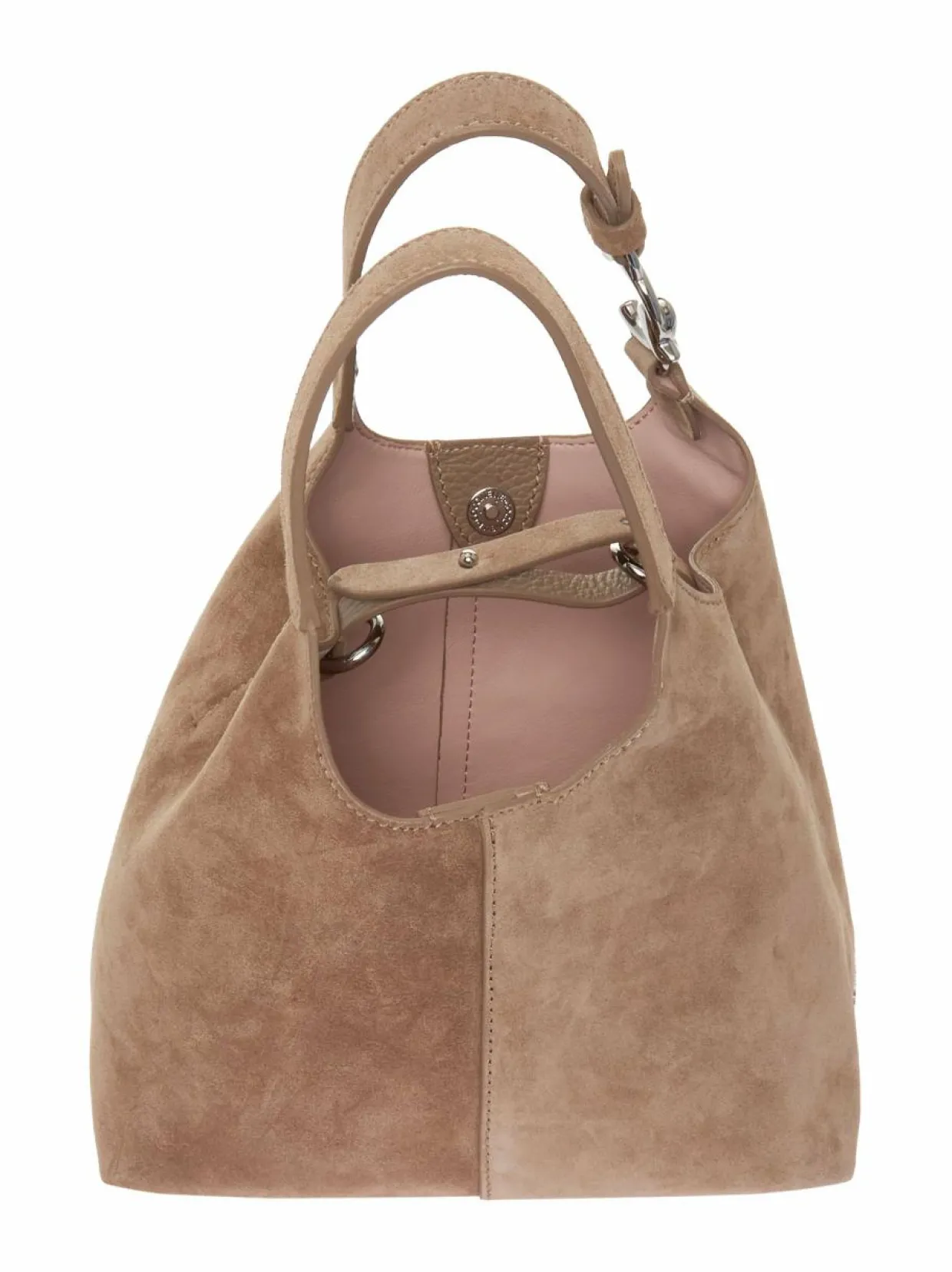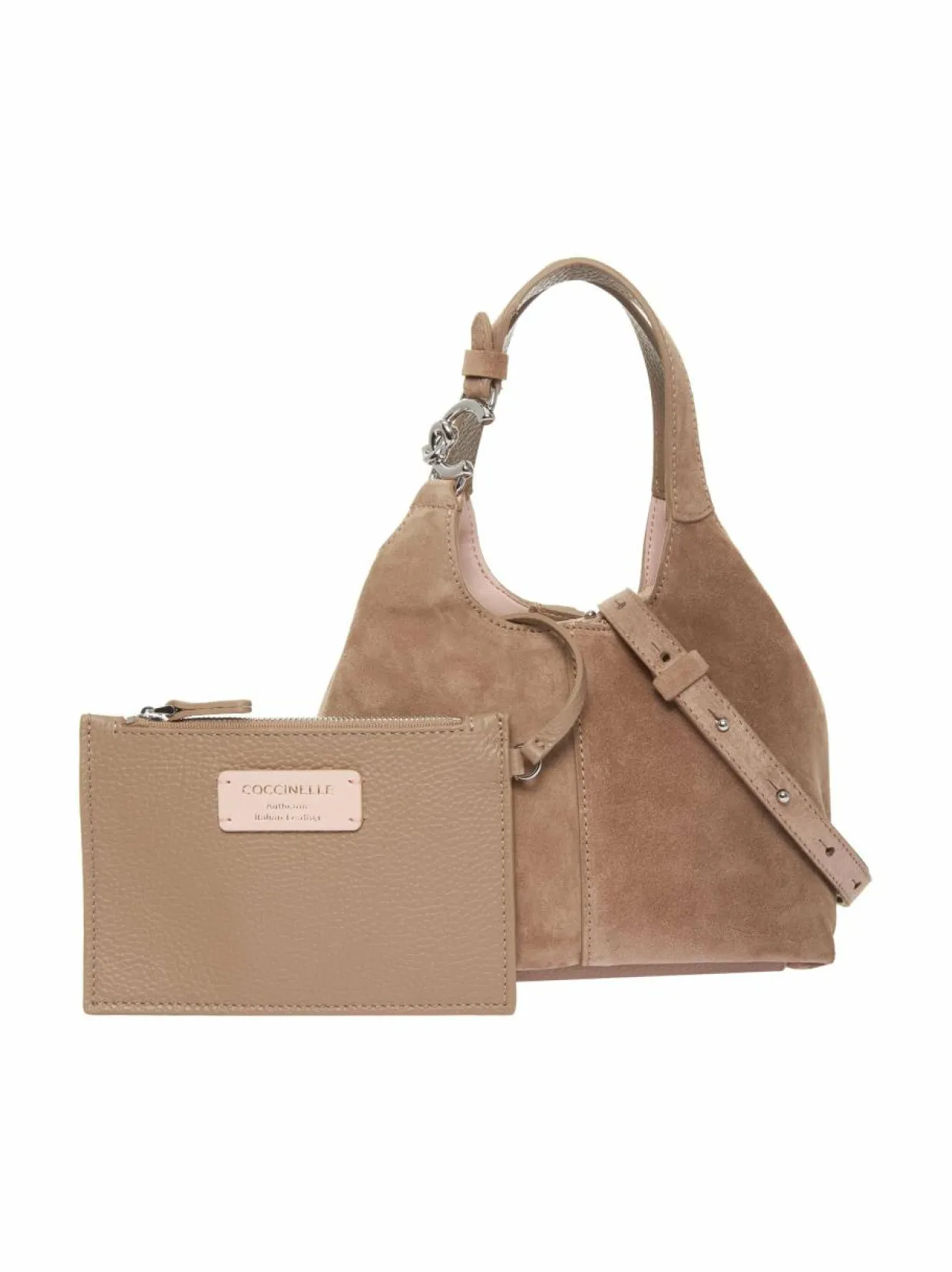 Coccinellen kompakti Easy Shopper S -laukku on valmistettu pehmeästä mokkanahasta, joka antaa sille ylellisen tunnun. Laukun sisäpuoli on vuorattu. Siinä on kantokahvojen lisäksi myös säädettävä olkahihna ja irrotettava vetoketjullinen sisätasku. Laukun koko on 20 x 19 x 13 cm.