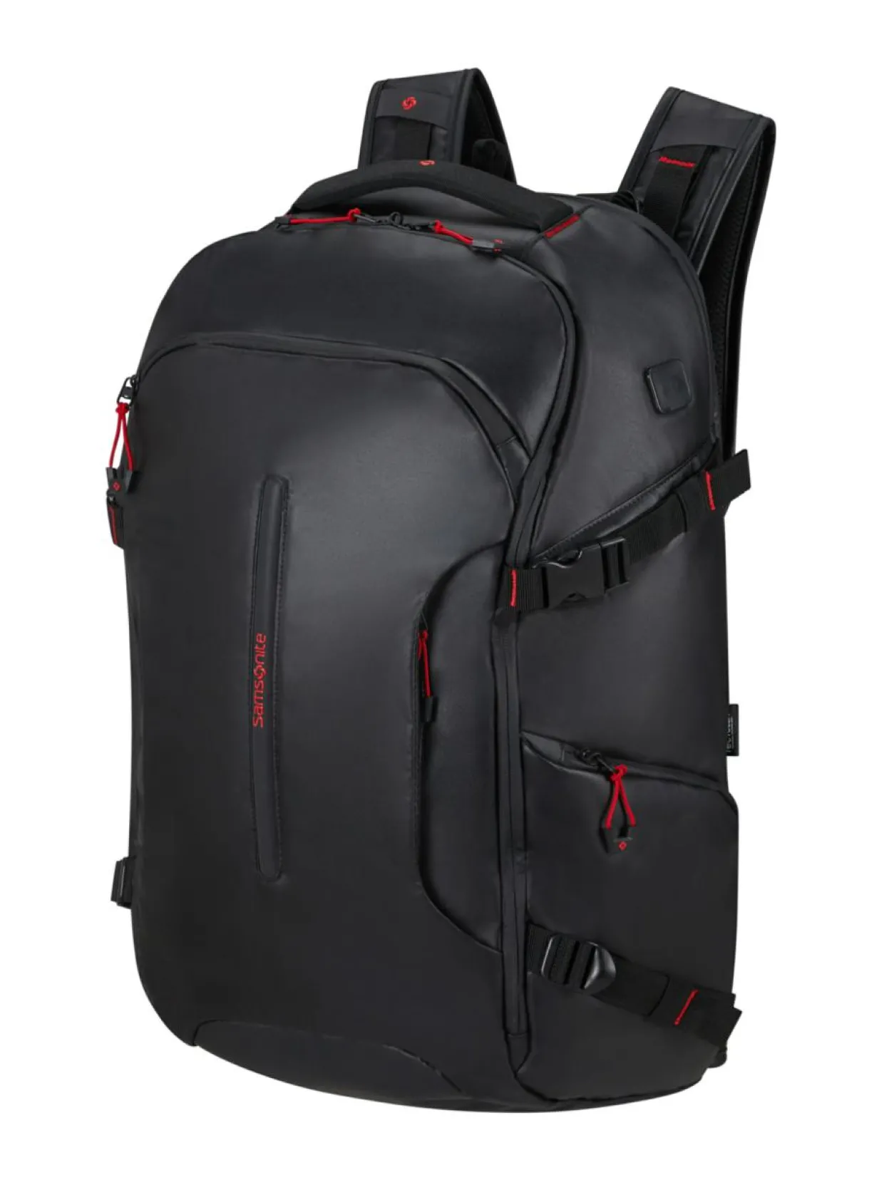 Tässä Ecodiver repussa on helppo pitää tavarat järjestyksessä. Isoimmassa osastossa on tasku sekä tietokoneelle että tabletille, tilavassa, vetoketjullisessa etutaskussa on paikat kynille ja puhelimelle. Pienempään etutaskuun mahtuvat pienet tavarat. Tämä reppu on erityisen miellyttävä selässä. Ergonomiset olkahihnat, heijastavat yksityiskohdat, hengittävä selkäpaneeli ja vyötärönauha tekevät matkustamisesta mukavampaa. Materiaali on vettähylkivää. Mitat: 34cm x 54cm x 26cm