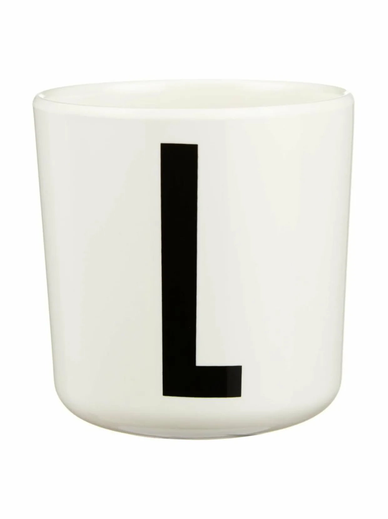 Yksinkertaisen tyylikkään kirjainmukin typografian on suunnitellut Arne Jacobsen. Korvaton muki soveltuu juomien lisäksi piensäilytykseen. Materiaali on melamiinia. Halkaisija on 7 cm, korkeus on 7 cm.