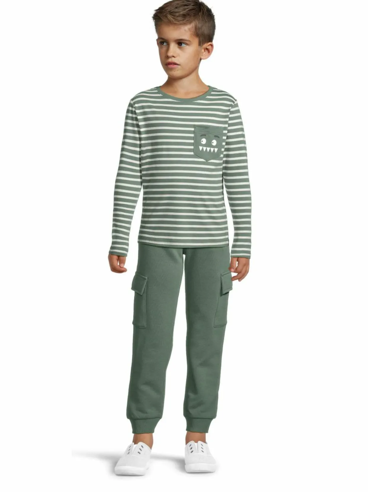 Tämä pitkähihainen trikoopaita on valmistettu laadukkaasta puuvillasta, minkä ansiosta se on ihanan pehmeä ja miellyttävä ihoa vasten. Paidassa on klassinen raitakuosi, jota piristää hauska hirviöaiheinen rintatasku etupuolella. Materiaali on joustavaa ja tuntuu erityisen mukavalta päällä, mikä tekee paidasta täydellisen valinnan niin leikkeihin kuin rentoon oleskeluun.