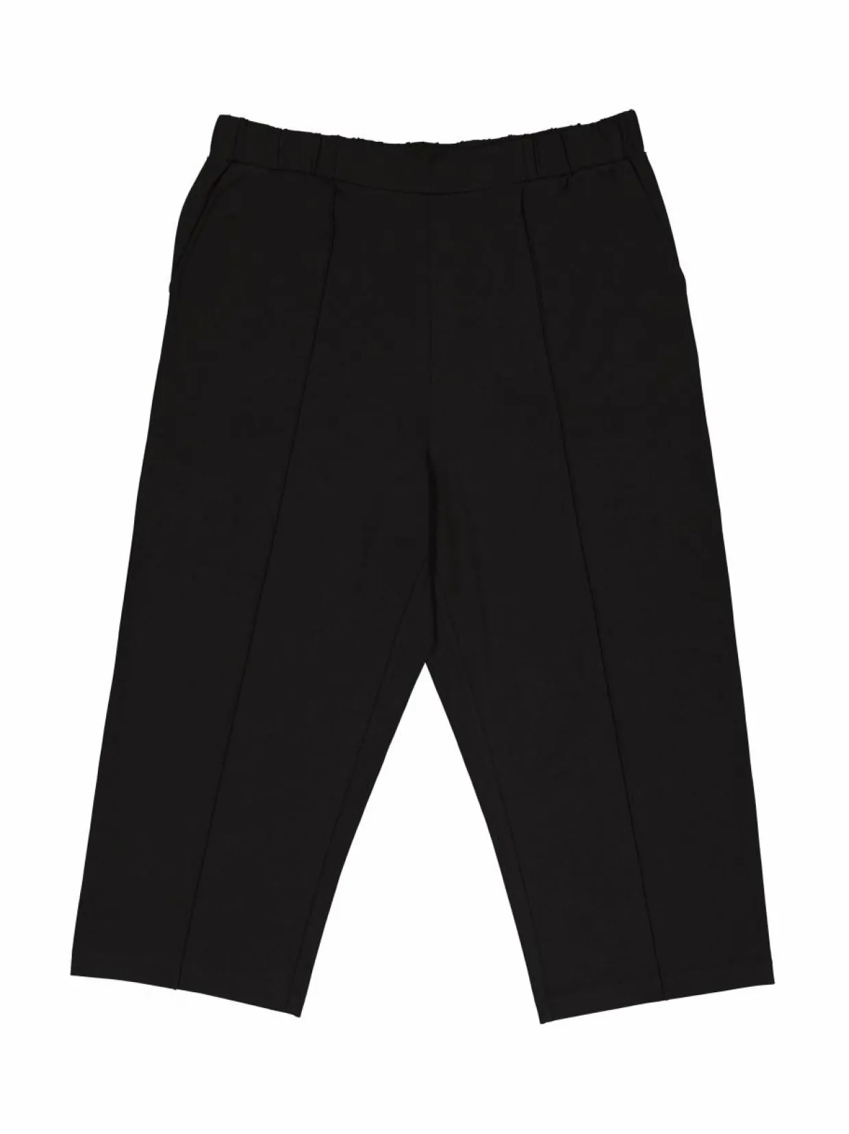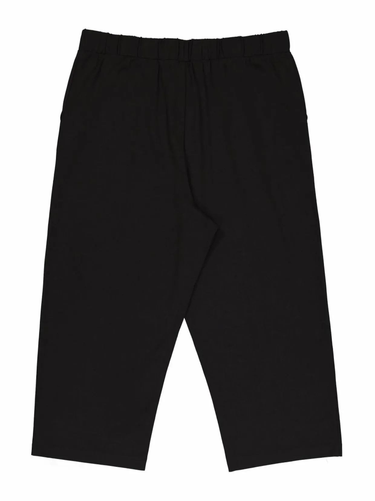 Eeli culotte-malliset housut on NOOMin ja Henna Lampisen yhteistyön tulos. Niissä on vajaamittaiset leveät lahkeet, joita somistavat tyylikkäät pystysaumat. Mukava vyötärölinja lisää käyttömukavuutta. Tässä housumallissa on myös sivutaskut. Materiaalina on käytetty pehmeän tuntuista ja joustavaa Ecovero-viskoosin sekoitetta.