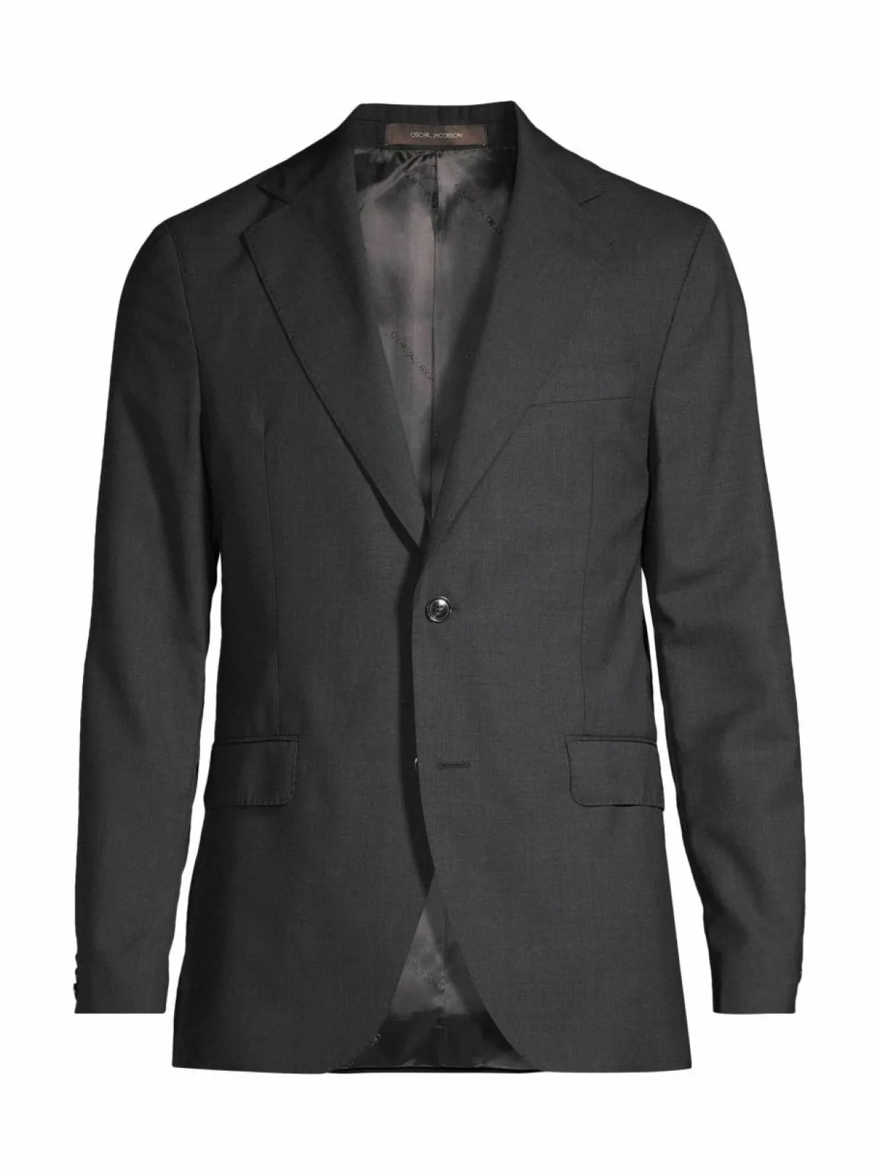 Materiaali100 % villa Hoito-ohjeetÄlä pese, Älä valkaise, Silitys keskilämpötilalla max 150 C, Kemiallinen pesu sallittu Väri110 DARK GREY Avainsanatbleiseri, puvuntakki, takki, Oscar Jacobson, virallinen takki