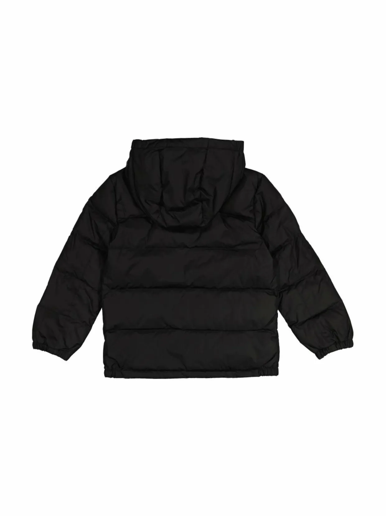 Lämmin ja vedenpitävä lasten toppatakki. Takissa on irrotettava huppu, edessä kolme vetoketjullista taskua ja yksi tasku sisällä. Hihansuissa on joustavat resorit. Kiinnitys vetoketjulla. Rinnassa hieno logobrodeeraus. Takki on valmistettu kierrätyspolyesteristä.
