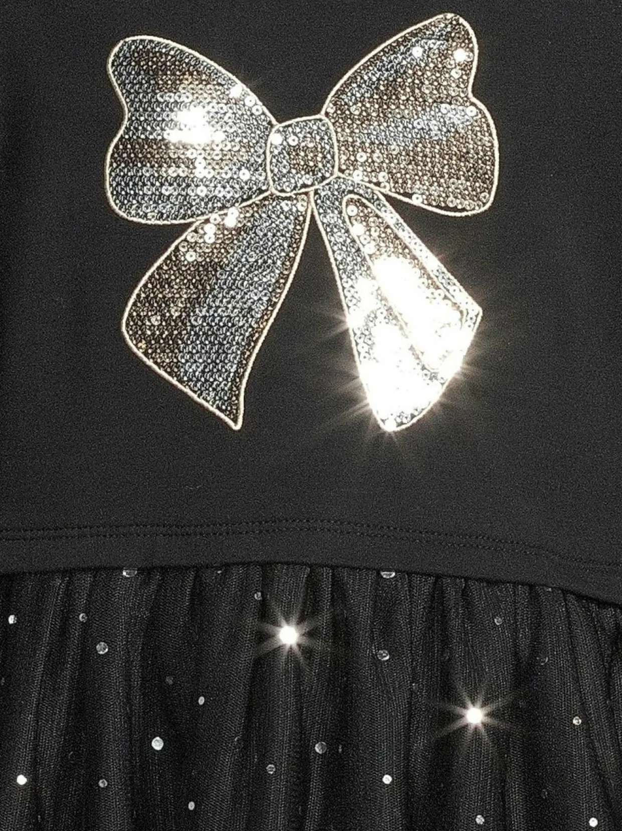Upea Elaine-mekko on valmistettu pehmeästä jerseystä ja siinä on kerrostettu, kiiltävillä paljeteilla koristeltu tyllihelma. Mekko on mukava ja helppo pukea päälle. Sen yläosaa koristaa kissakuvio. Se sopii täydellisesti juhliin ja erilaisiin tilaisuuksiin.