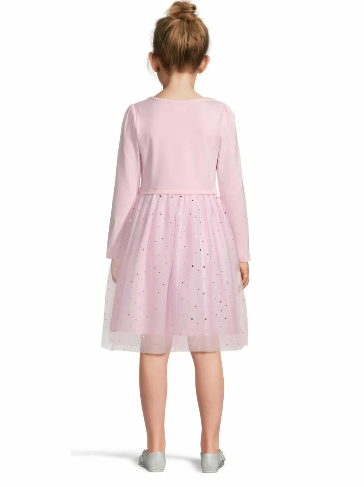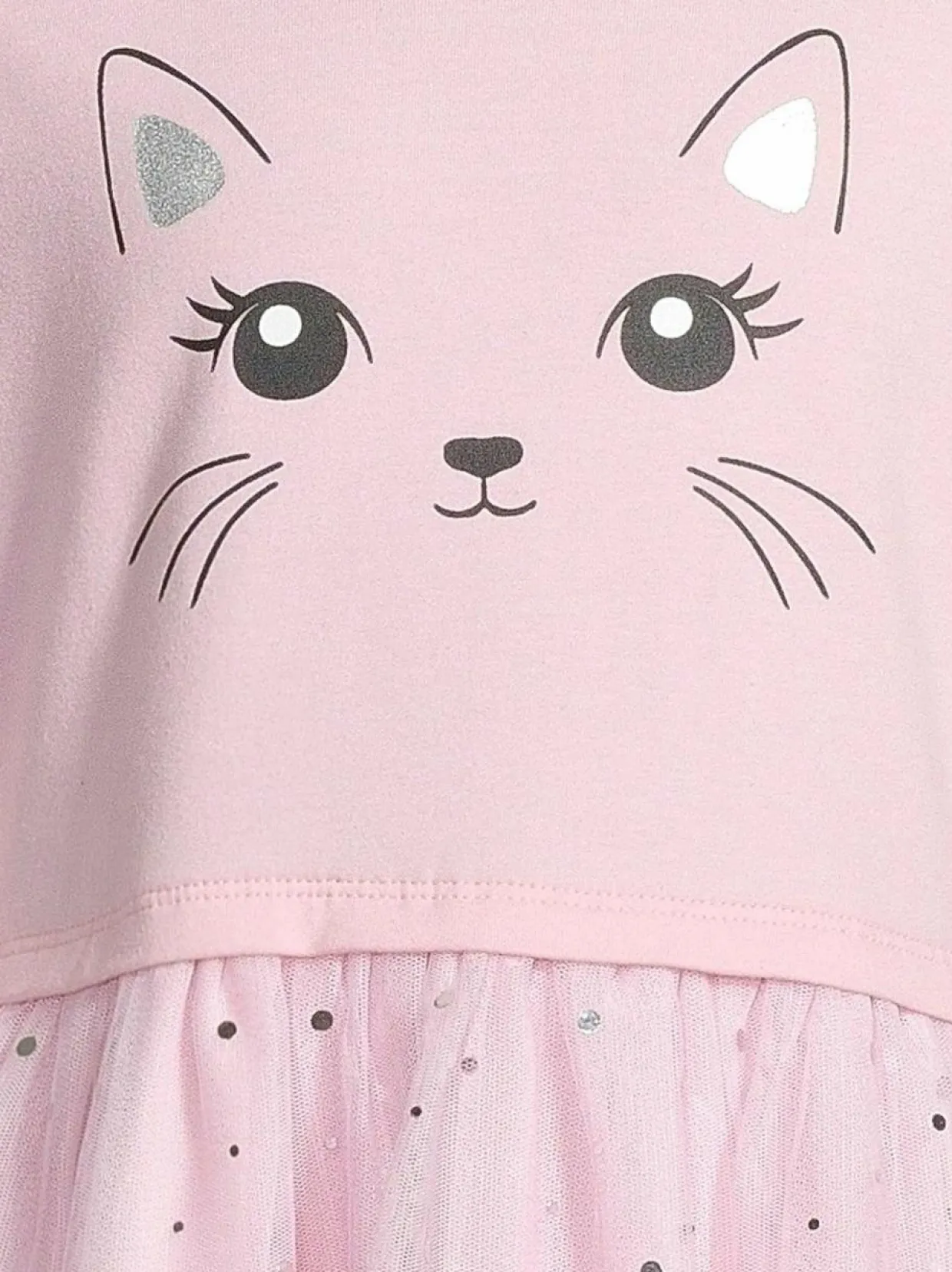 Upea Elaine-mekko on valmistettu pehmeästä jerseystä ja siinä on kerrostettu, kiiltävillä paljeteilla koristeltu tyllihelma. Mekko on mukava ja helppo pukea päälle. Sen yläosaa koristaa kissakuvio. Se sopii täydellisesti juhliin ja erilaisiin tilaisuuksiin.