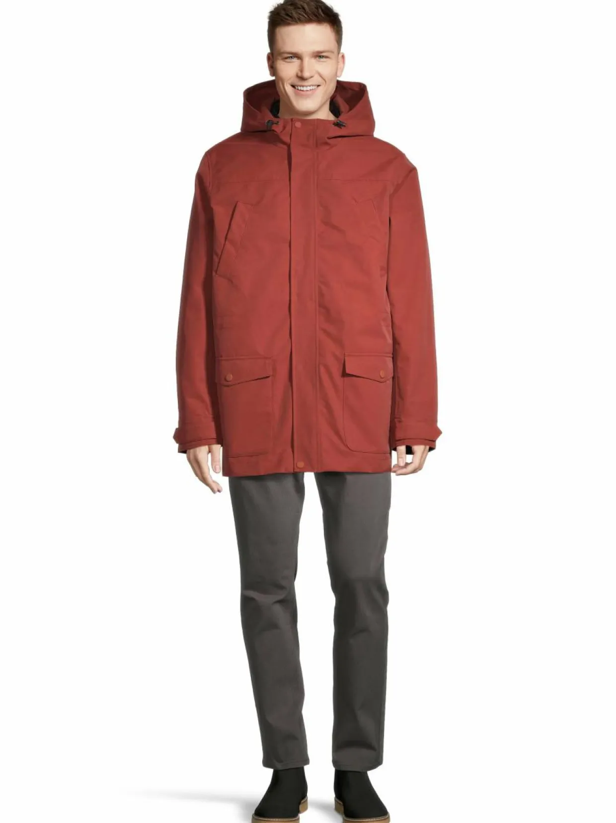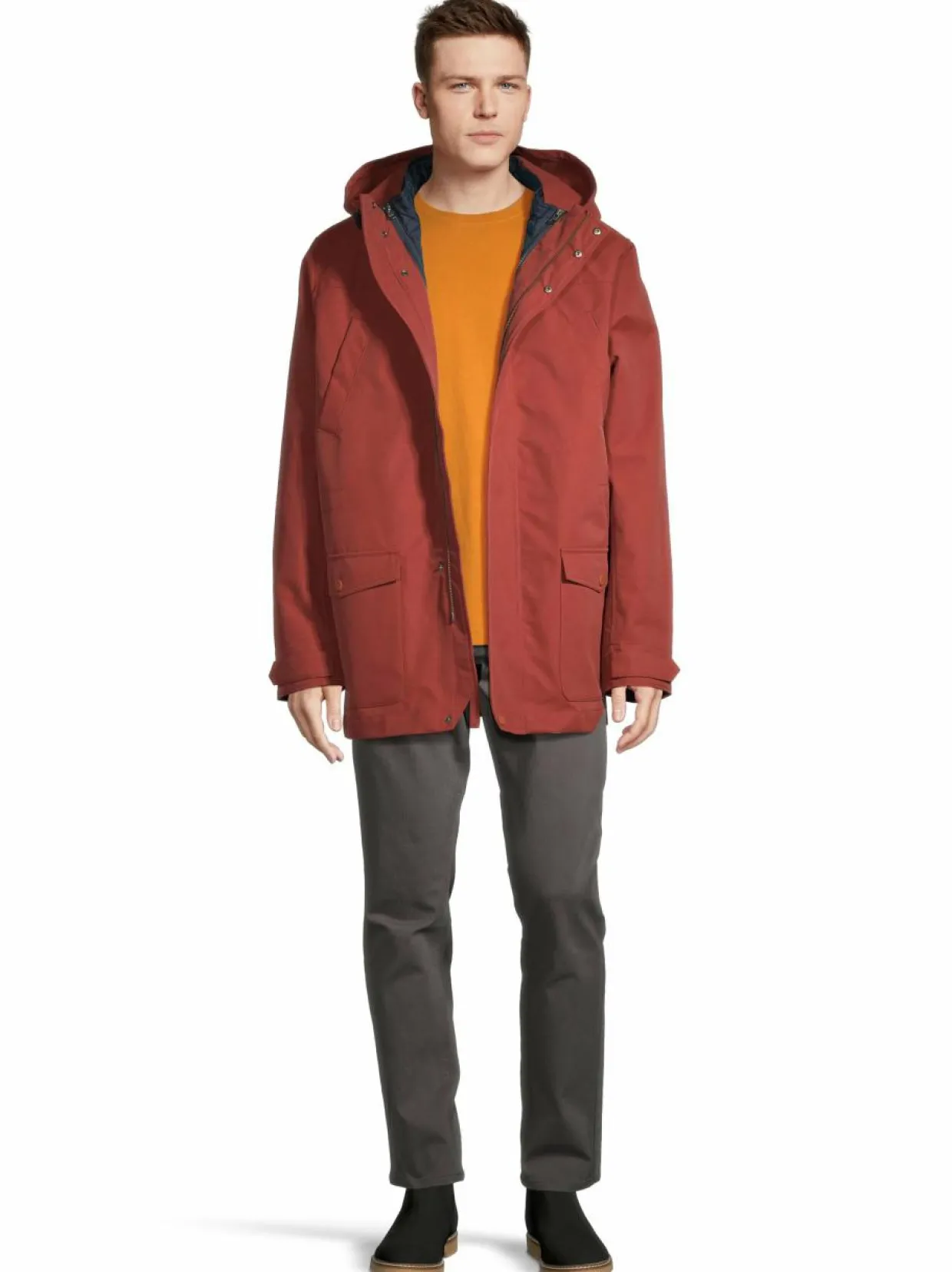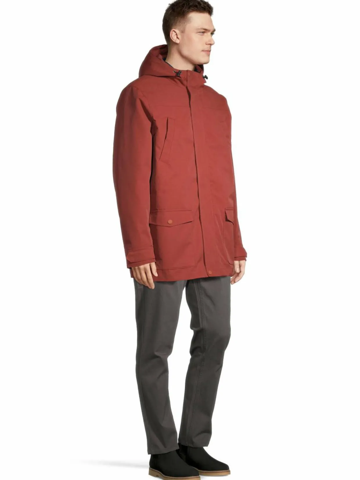 Tämä ulkotakki suojaa sekä tihkusateelta että tuulelta. Kolmikäyttöisessä parkassa on monta käyttömahdollisuutta. Sisäinen kevyt tikkitakki painonapeilla on irrotettava, ja sitä voit käyttää myös erikseen.