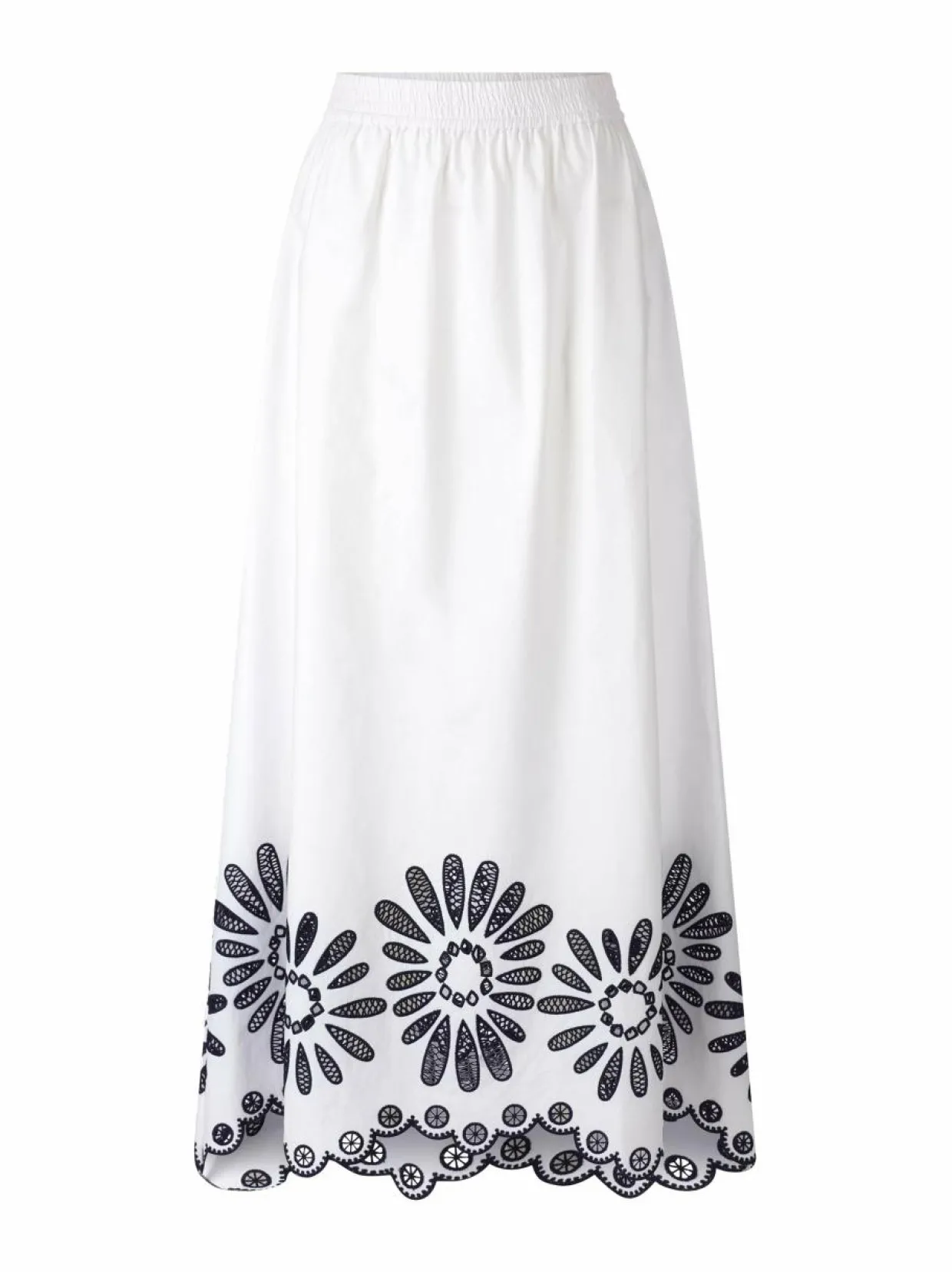Helposti puettava puuvillahame rich & royal merkiltä. Vyötärölinjassa on mukavasti joustoa. Helmassa kaunis kontrastisävyinen kukkabrodeeraus.