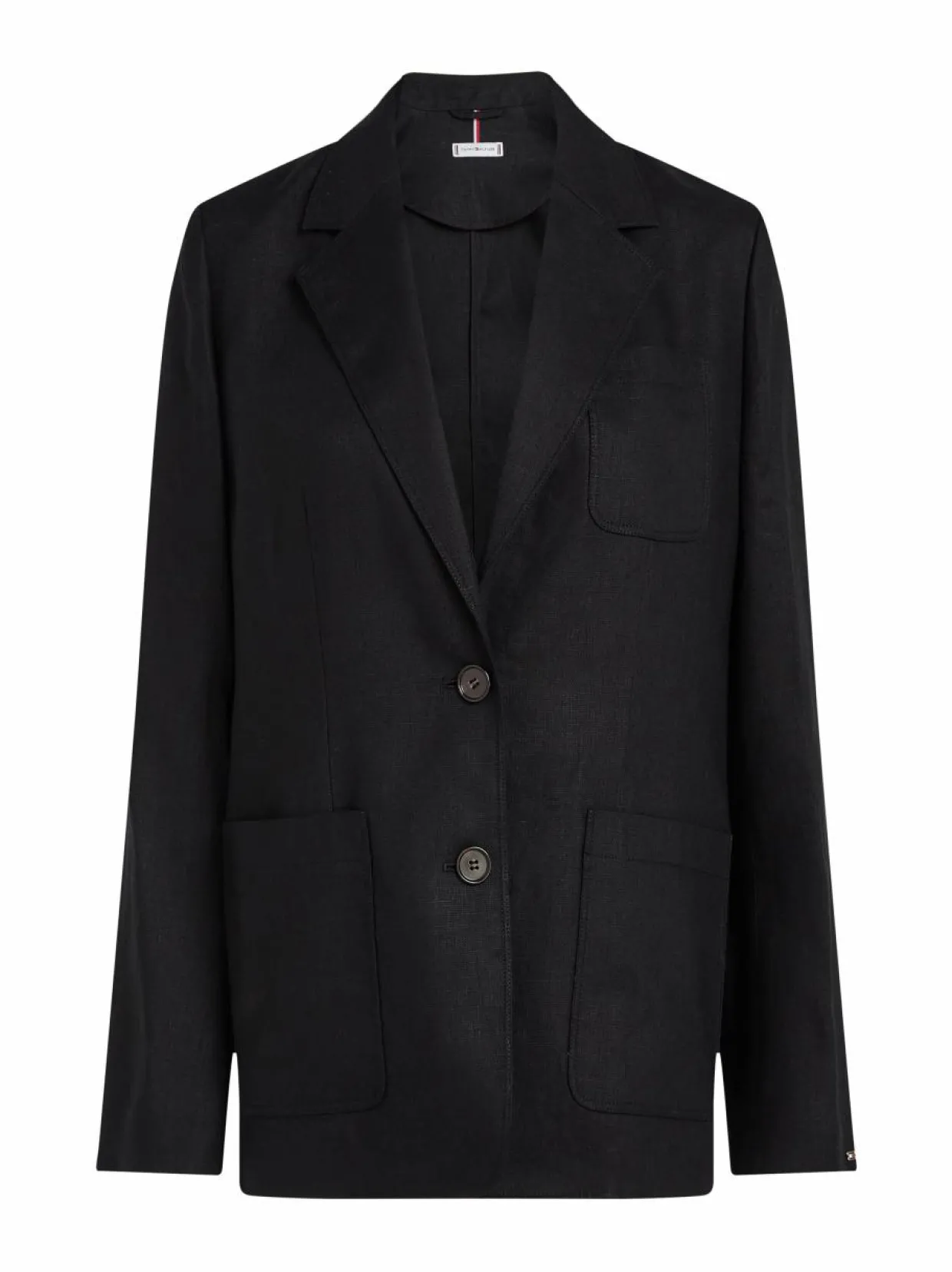 Tommy Hilfigerin Ess Linen Regular -bleiseri on valmistettu pellavasta ja lyocell-kuidusta. Se on rento ja mukava. Siinä on kaksi käsitaskua ja yksi rintatasku. Bleiserissä on yksirivinen nappikiinnitys edessä.
