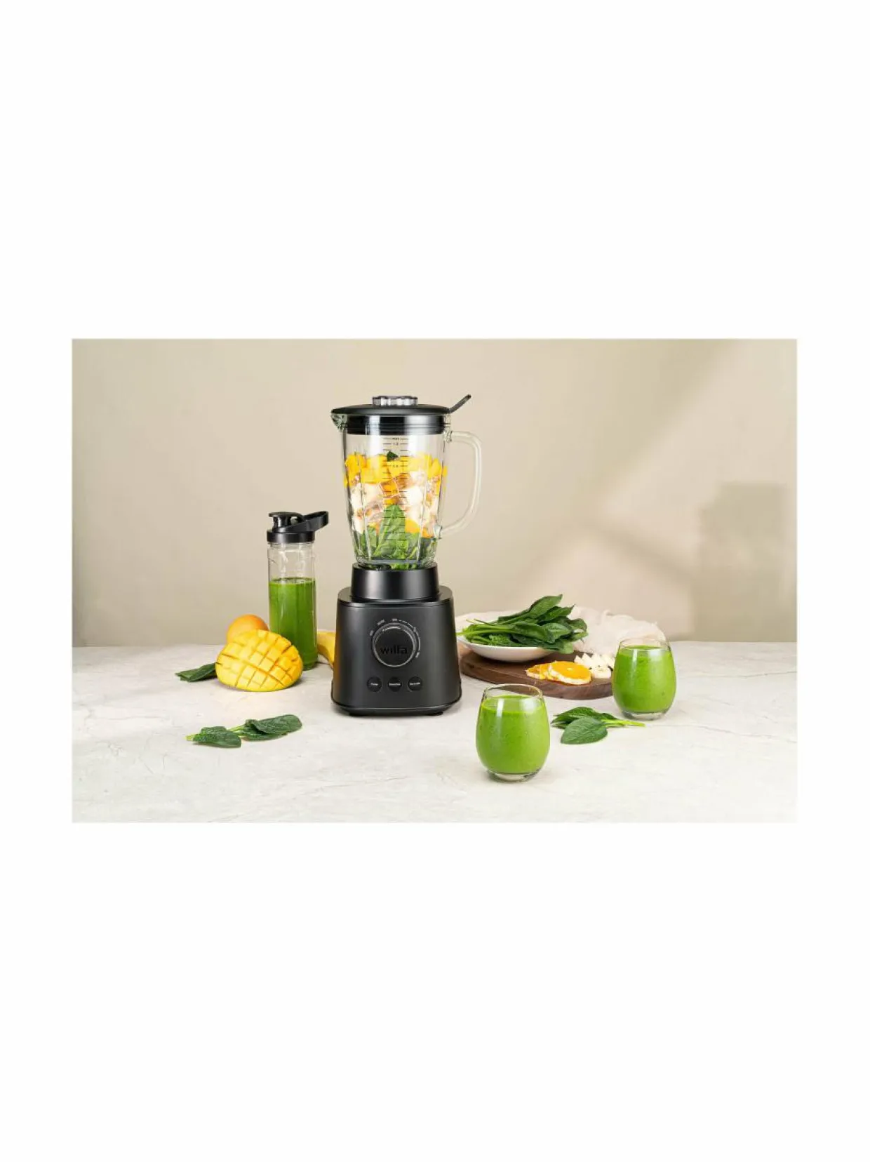 Wilfan Essential 1800 Auto -tehosekoittimen kannun tilavuus on 1,8 litraa, joka valmistaa smoothiet koko perheelle.Borosilikaattikannu kestää kuumaa jopa 90 ° C, joten voit sekoittaa lämpimiä raaka-aineita loihtien esimerkiksi samettisia sosekeittoja tai kastikkeita.Tehosekoittimessa on 2 esiasennettua ohjelmaa, jotka on optimoitu käyttötarkoitukselle sopivaksi tehon, nopeuden ja ajan suhteen. Smoothie-ohjelmalla saat valmistettua ihanan samettisia smoothiejuomia ja jäänmurskaus ohjelma puolestaan murskaa jäisiä ainesosia. Lisäksi mukana sykäysohjelma, jolla nostat nopeutta pulssimaisesti korkeammalle mahdolliselle tasolle yhdellä napinpainannuksella. Esiasetettujen ohjelmien lisäksi voit itse säätää nopeutta portaattomasti tarpeen mukaan.