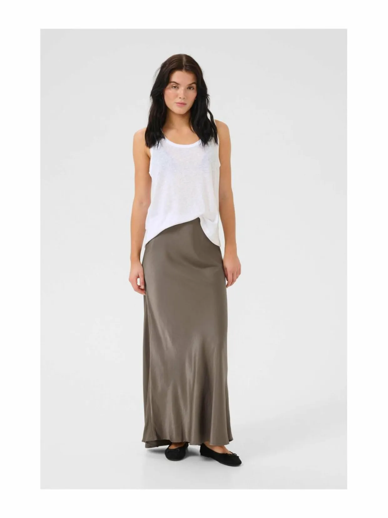 Materiaali66 % viskoosi, 34 % polyesteri Hoito-ohjeetHienopesu 30 asteessa Väri181112 WALNUT Avainsanathame, pitkä hame, viskoosihame, MY ESSENTIAL WARDROBE, laskeutuva hame, arkihame, juhlahame, satiinihame