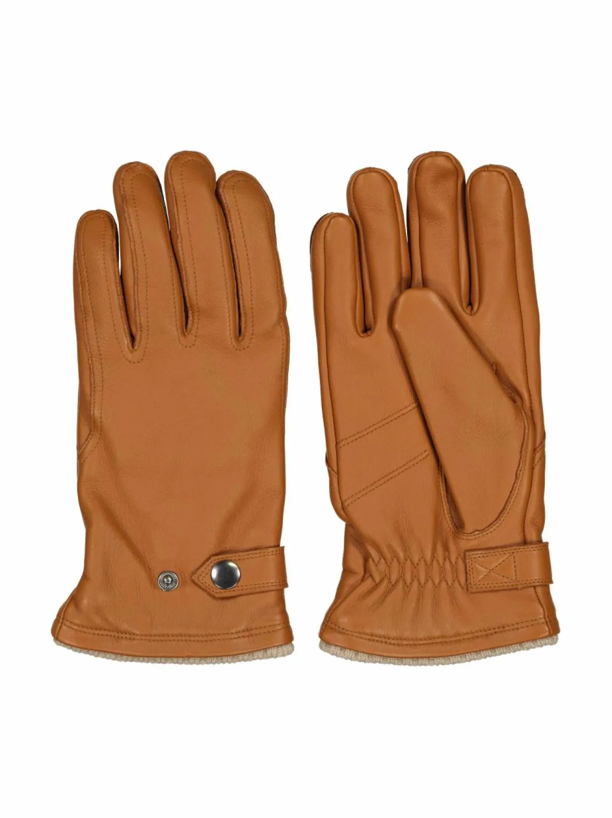 Nämä nahkakäsineet henkivät ajatonta eleganssia ja ovat täydellinen valinta kylmiin päiviin. Pehmeä nahka tuntuu miellyttävältä ihoa vasten ja antaa hanskoille hienostuneen ilmeen. Ranteen reunassa oleva resori sekä ranteen säätö painonapilla lisäävät käyttömukavuutta ja istuvuutta.