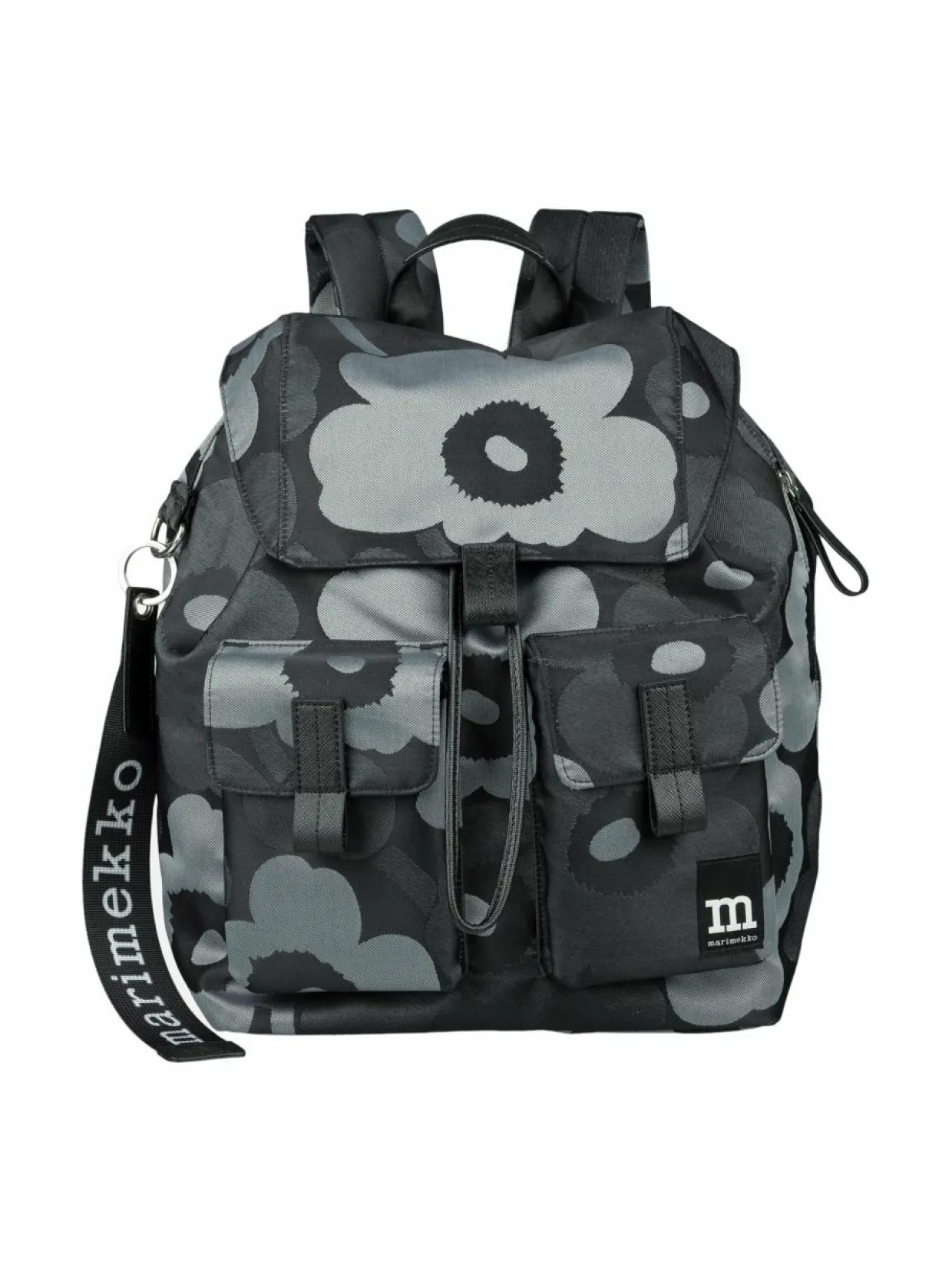 Tuotenumero173021765 Materiaali100 % puuvilla Väri990 GREY, DARK GREY, BLACK KokoOne size Avainsanatreppu, selkäreppu, kangasreppu, Unikko, Marimekko, päiväreppu, kierrätys