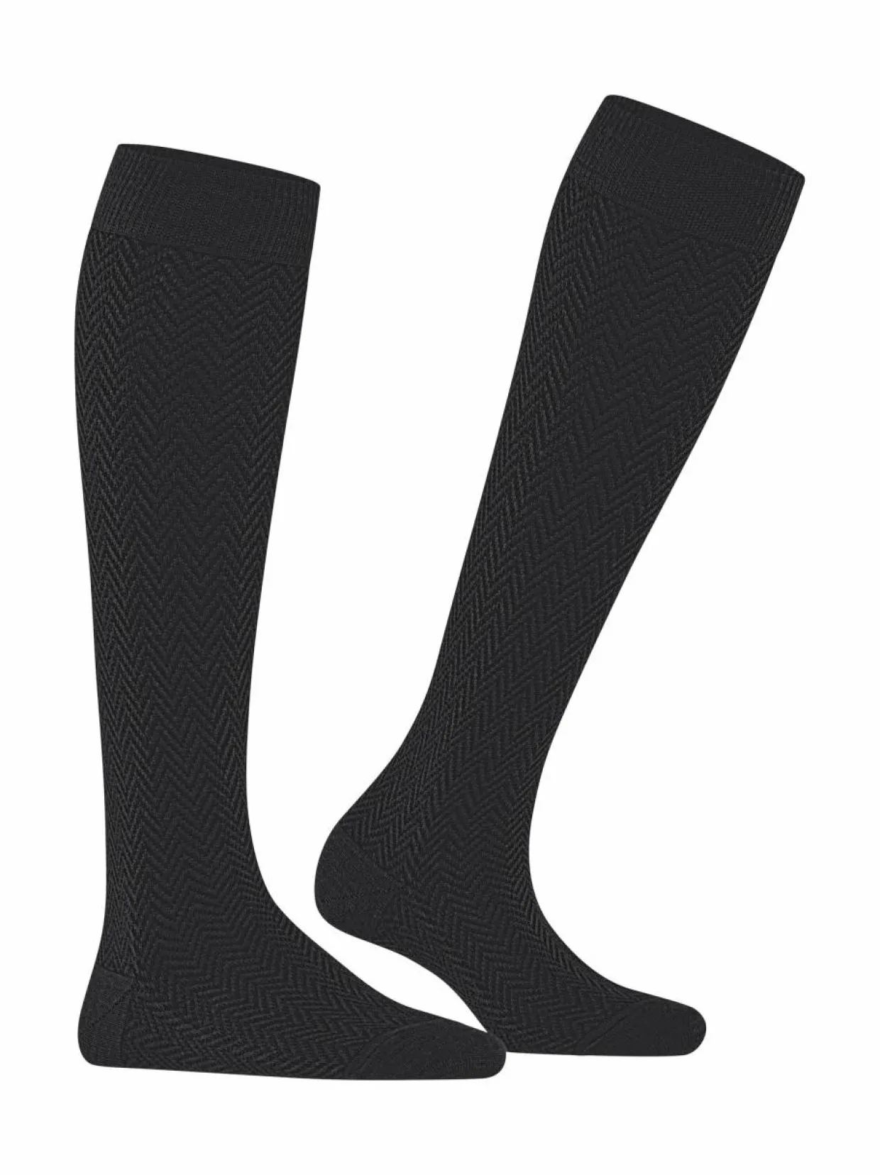 Nämä polvipituiset sukat tarjoavat lämpöä ja mukavuutta kylmiin päiviin. Niiden moderni kalanruotokuviointi tuo ilmettä asuun. Valmistettu pehmeästä ja lämpimästä materiaalista, joka tuntuu miellyttävältä iholla. Nämä sukat ovat ihanteelliset kumppanit kylmään vuodenaikaan, tarjoten samalla erinomaisen käyttömukavuuden. Erityissuunnittelu takaa erinomaisen istuvuuden jalassa ja pohkeessa.