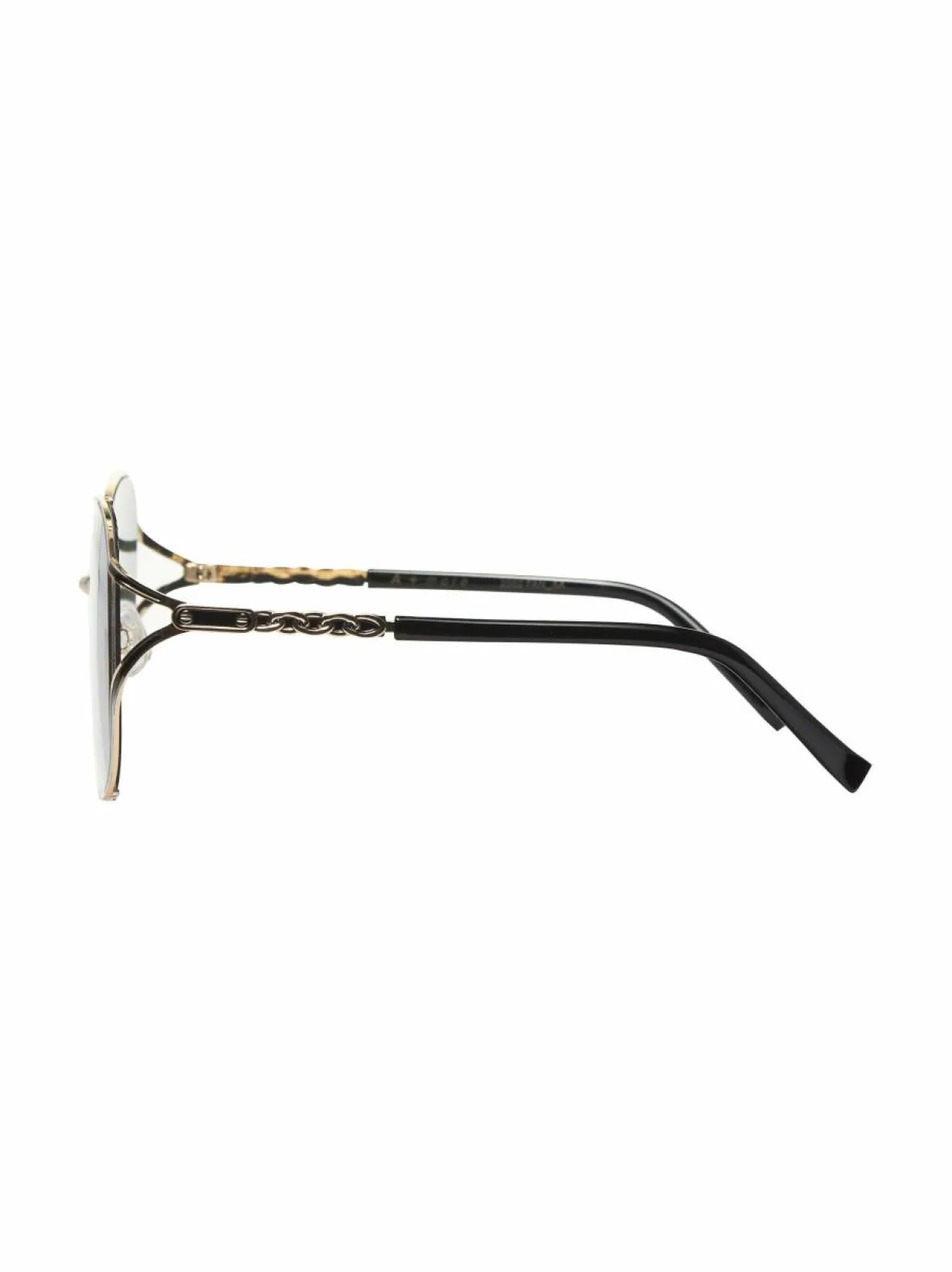 A+more -merkin Fan-aurinkolasit antavat 100 % UV-suojan. Niissä on trendikäs muotoilu. Malli on valmistettu metallista ja muovista ja siinä on sivuilla koristeelliset metalliosat. Ne pysyvät hyvin päässä. Lasit toimitetaan niiden omassa kotelossa ja mukana tulee myös puhdistusliina.