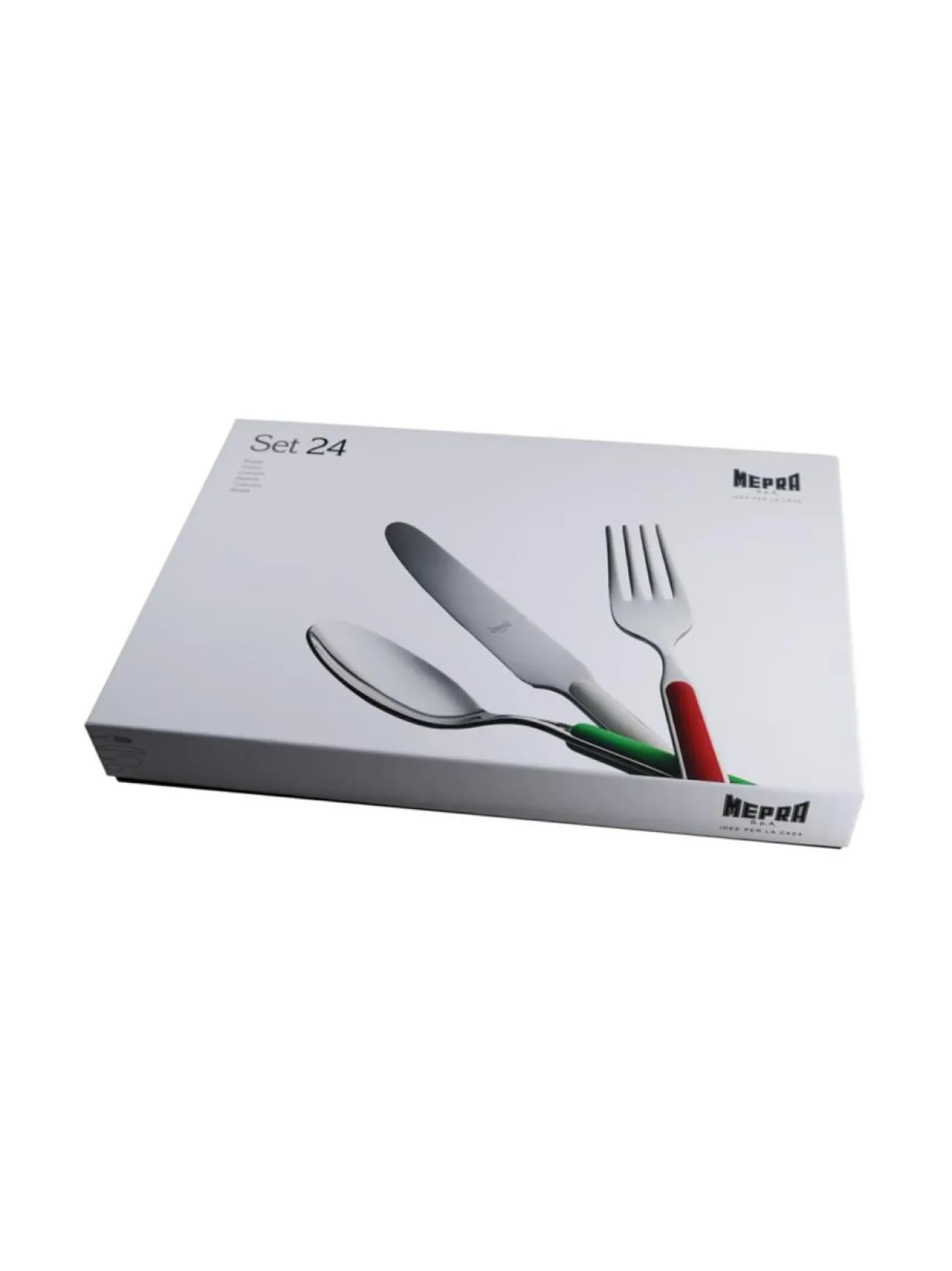 Lasikuidulla rikastettu hartsinen kahvaosa takaa aterimien kestävyyden ja värejen kirkkauden monien pesukertojenkin jälkeen. Kahvan hartsiosat ovat ultraäänihitsattuja mikä tekee kahvaosasta pitkäkestoisen. Materiaali ruostumatonta terästä, kahvaosat hartsia. Konepesunkestävä. Valmistettu Italiassa.Tuotenumero1518972 Materiaaliruostumaton teräs, hartsi, lasikuitu VäriYELLOW Avainsanataterimet, aterinsetti, väri, värilliset aterimet