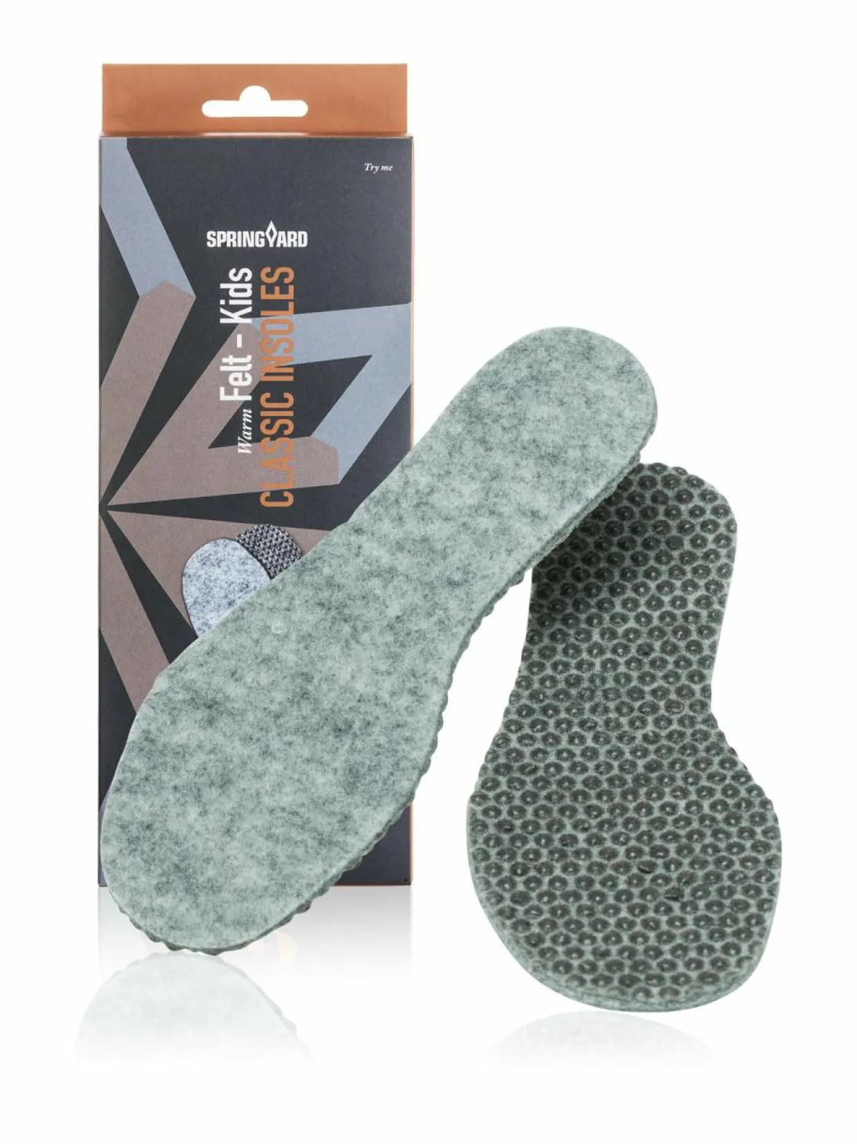 Springyard Felt-pohjalliset sopivat kaikkiin kenkiin. Pohjalliset tuovat lämpöä ja mukavuutta. Lisäksi, pohjallisten avulla voidaan saadaan muokattua jalkineiden istuvuutta sopivammaksi.