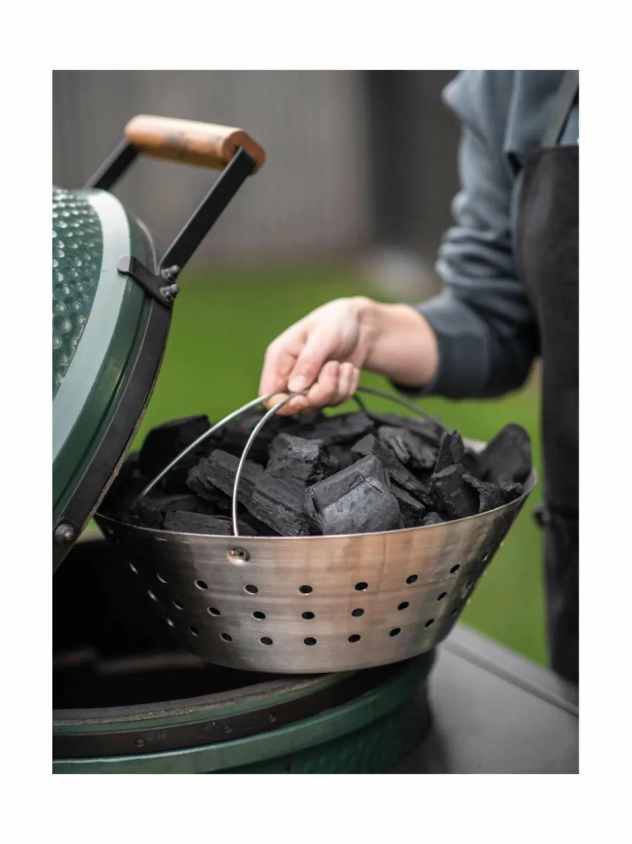 Ruostumattomasta teräksestä tehdyn Fire Bowl -hiilikorin avulla saat tuhkat pois jäähtyneestä Big Green Egg grillistä helposti ja likaamatta käsiä. Laita kori jäteastian yläpuolelle ja suodata tuhkat jäähtyneistä hiilistä. Tuhkien poistaminen takaa parhaan mahdollisen ilmavirtauksen, jolloin grilli syttyy nopeasti.Hiilikori on tehty kaikkein korkealaatuisimmasta ruostumattomasta teräksestä eikä siinä ole hitsisaumoja, joten se on erittäin kestävä. Kätevät kahvat helpottavat korin liikuttelua. Hiilikorin voi laittaa valurautaritilän päälle tai suoraan tulipesään.