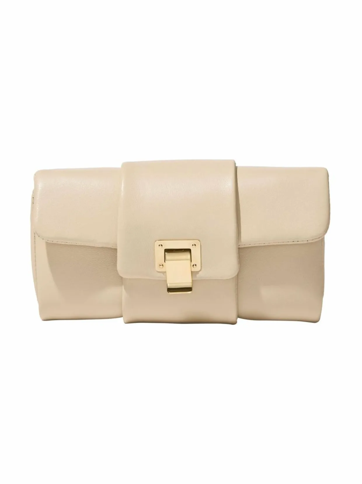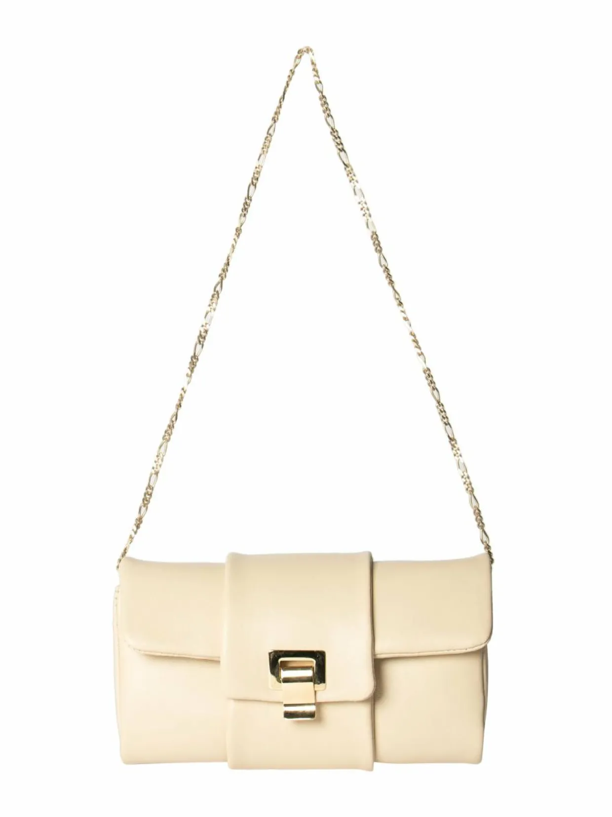 Taipuisasta nahasta valmistettu pieni laukkumalli arkeen ja juhlaan. Läppä sulkeutuu kätevällä PS1-lukkomekanismilla. Päälokeron lisäksi löydät sisältä myös avotaskun. Mitat: Leveys 18,5 cm, korkeus 11 cm ja syvyys 4 cm. Olkaketjun korkeus: 25,5 cm.