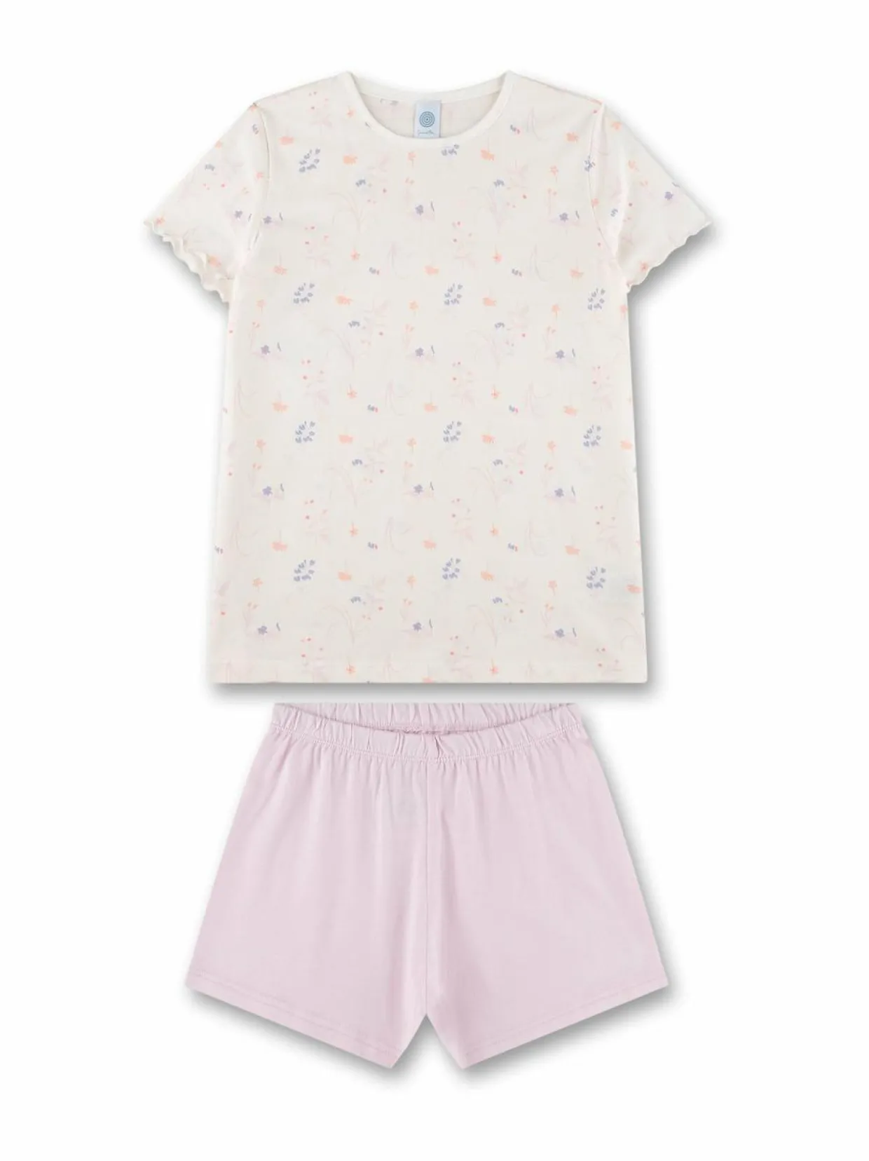 Sanetta-merkin Flower Print -shortsipyjama on valmistettu pehmeästä ja hengittävästä puuvillan ja modaalin sekoitteesta. Yöasussa on kaunis kukkakuvioinen yläosa ja yksiväriset shortsit. Yläosassa on lyhyet hihat ja pyöreä pääntie. Shortsit ovat joustavat ja mukavat. Yöasu on ihanteellinen nukkumaanmenoon ja rentoutumiseen. Se on valmistettu 50 % puuvillasta ja 50 % modaalista. Materiaali on pehmeä ja hengittävä, mikä tekee yöasusta mukavan käyttää. Flower Print -shortsipyjama on ihanteellinen lahja lapselle.