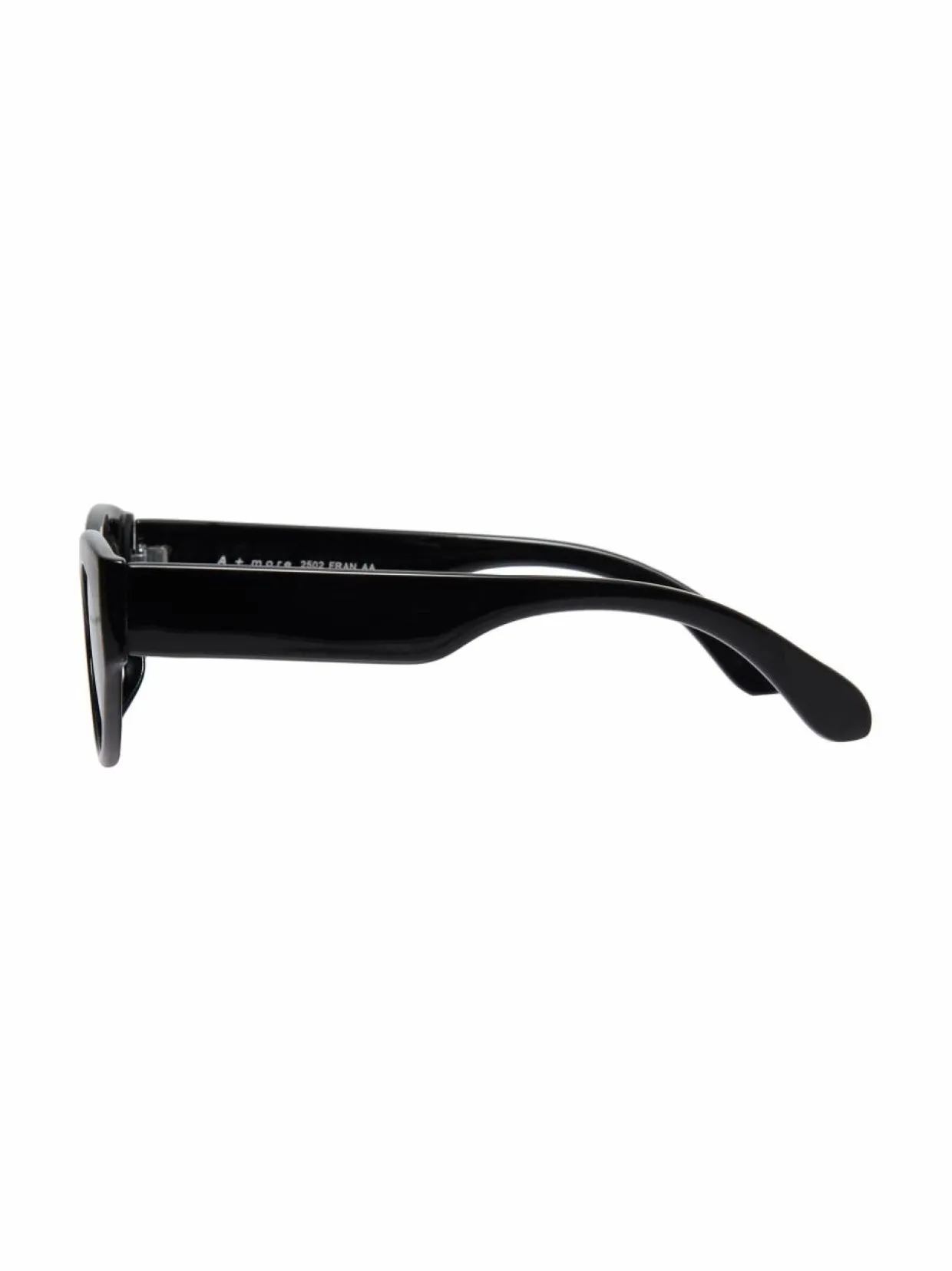 A+more:in viehättävät Fran-aurinkolasit ovat kissansilmämalliset. Niiden kehykset ovat kierrätysmuovia. Linssit tarjoavat 100-prosenttisen UV-suojan. Ne ovat tyylikäs valinta aurinkoiseen päivään esim. kaupungille ja rannalle.