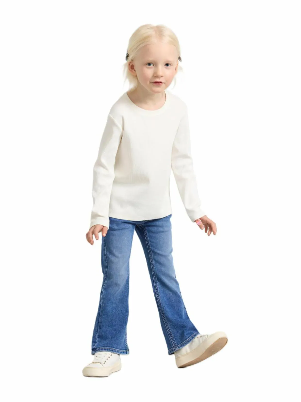 Lindexin joustavat pull-up-farkut on valmistettu pehmeästä denimjerseystä. Farkuissa on joustava vyötärö ja levenevät lahkeet.