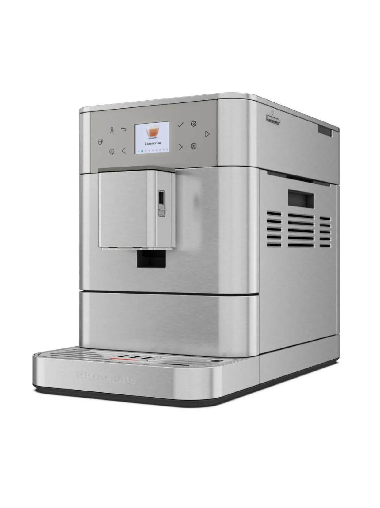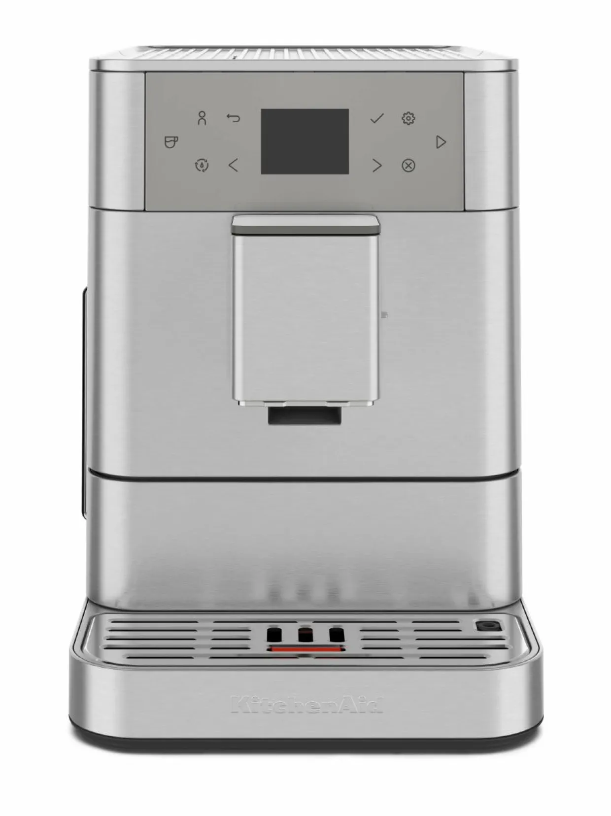 Tuotenumero171408063 Materiaalimetalli, muovi Takuu36 kk ValmistusmaaSveitsi VäriSTAINLESS STEEL Koko36,3x26x47,3 CM AvainsanatKitchenAid, espressokone, koti, keittiö, kahvi