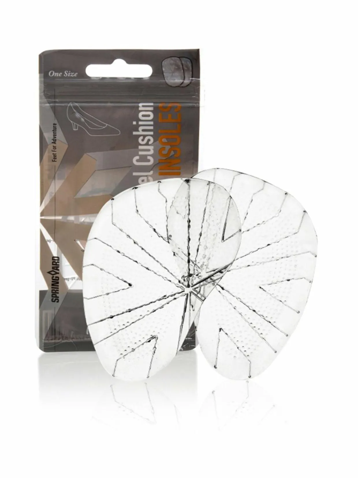 Huomaamaton Springyard-päkiätuki ehkäisee kuormitusta ja painetta ja pitää jalan paikallaan jalkineessa.