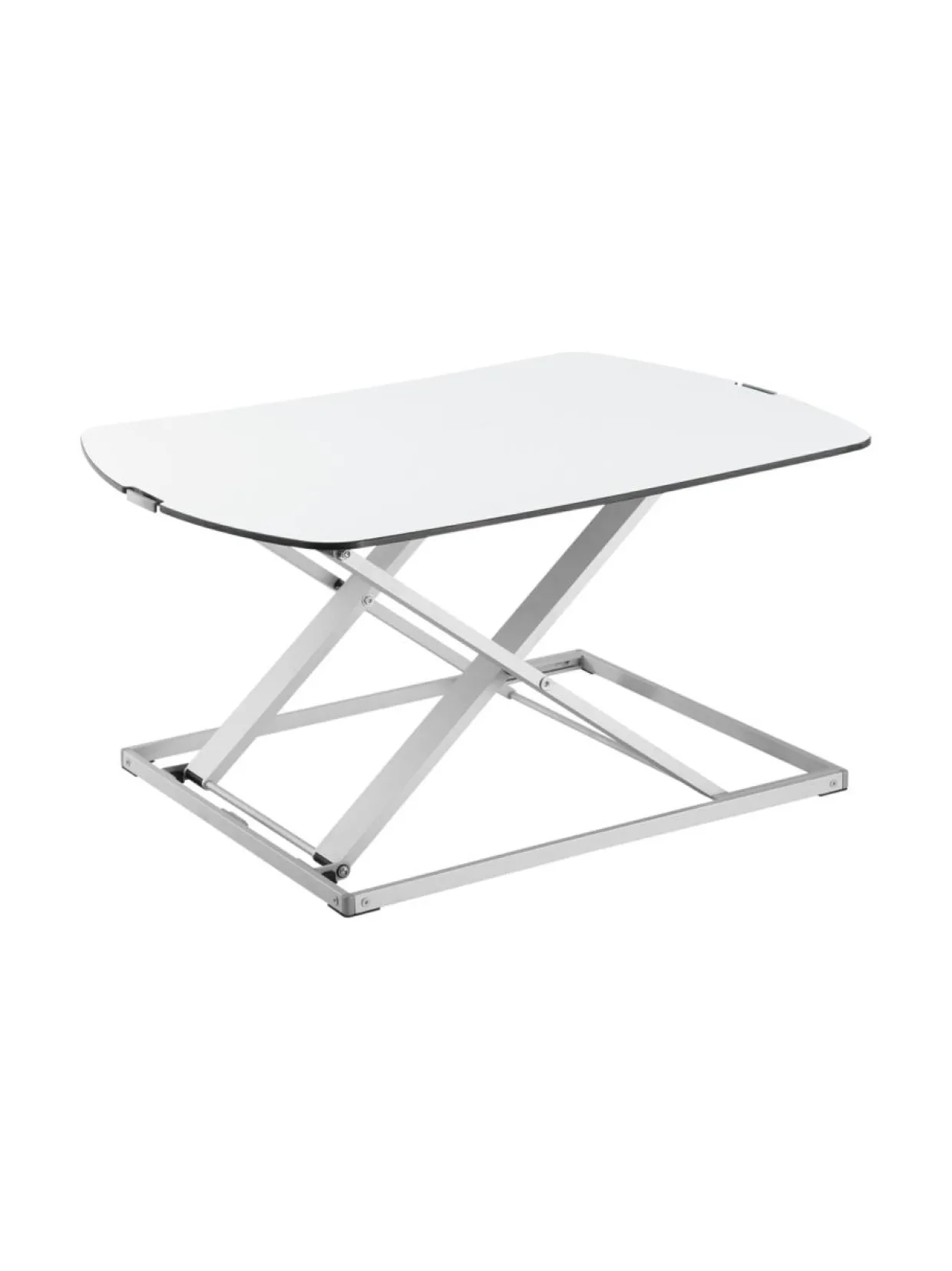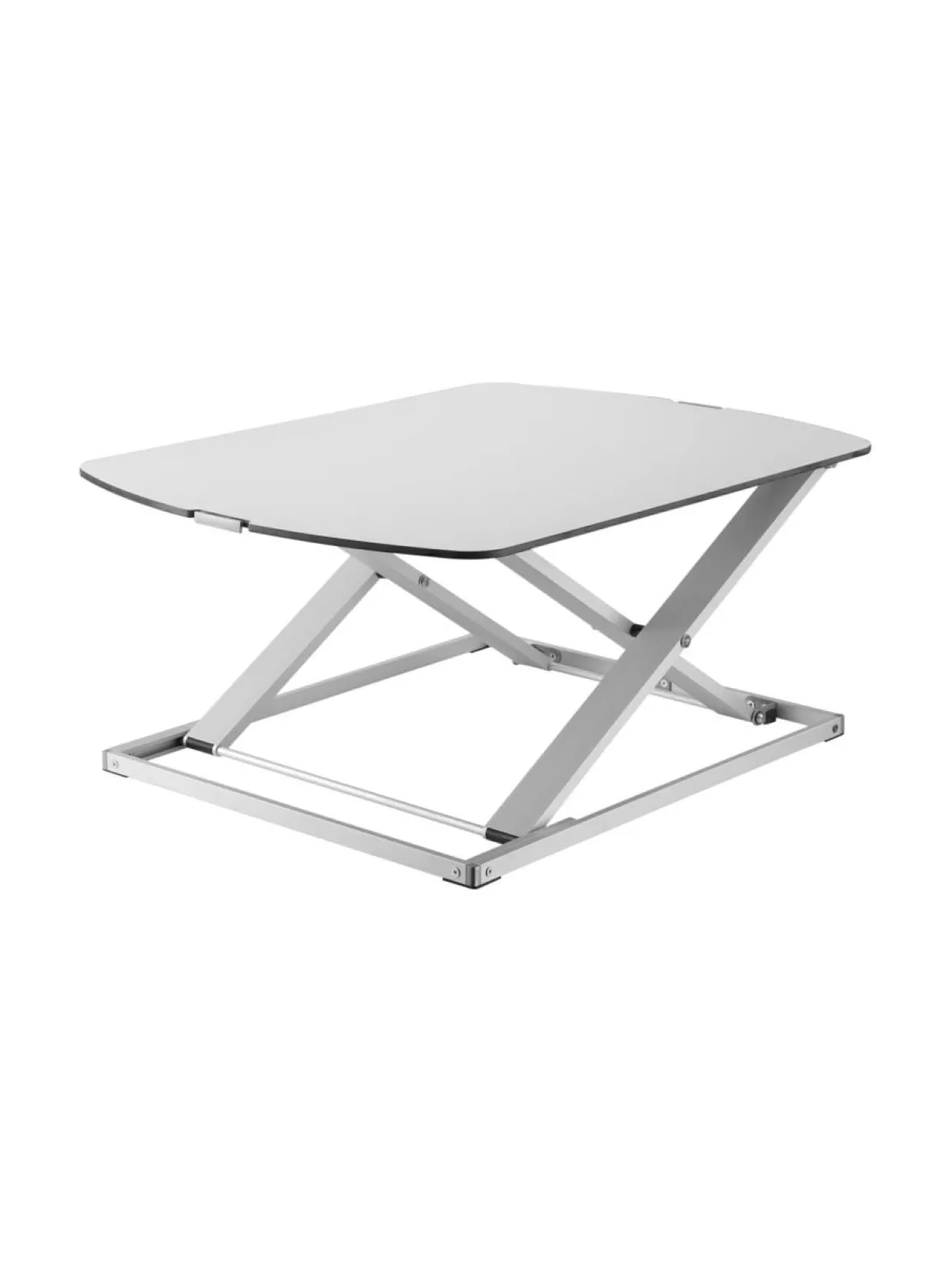 Portaaton korkeudensäädin. Alin korkeus 3,5 cm, maksimikorkeus 40 cm. Paino 10,5kg (paketin kanssa 11,4 kg). Maksimikuormitus 10kg. Pöytätason mitat: leveys 79,5 cm / syvyys 56 cm, pöytälevyn paksuus 8 mm. Alumiini jalkakehikon mitat: leveys 64 cm / syvyys 52 cm. Väri valkoinen, levyä ympäröi musta ABS nauha. Jalat alumiinia. Jalkojen alla liukuesteet. Takuu 2 vuotta.Tuotenumero1218863 Avainsanatkorkeussäädettävä työpöytä, seisomatyö, kaasujousellinen työtaso, säädettävä taso