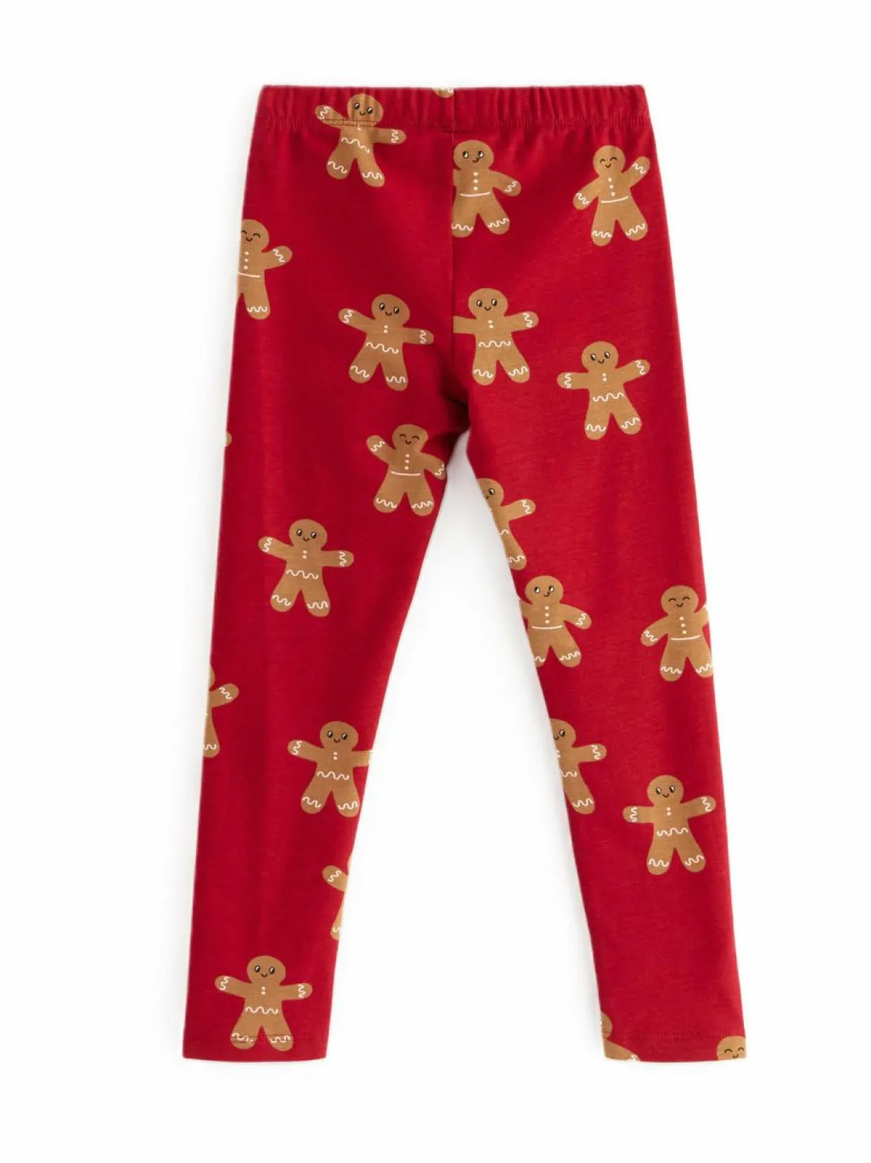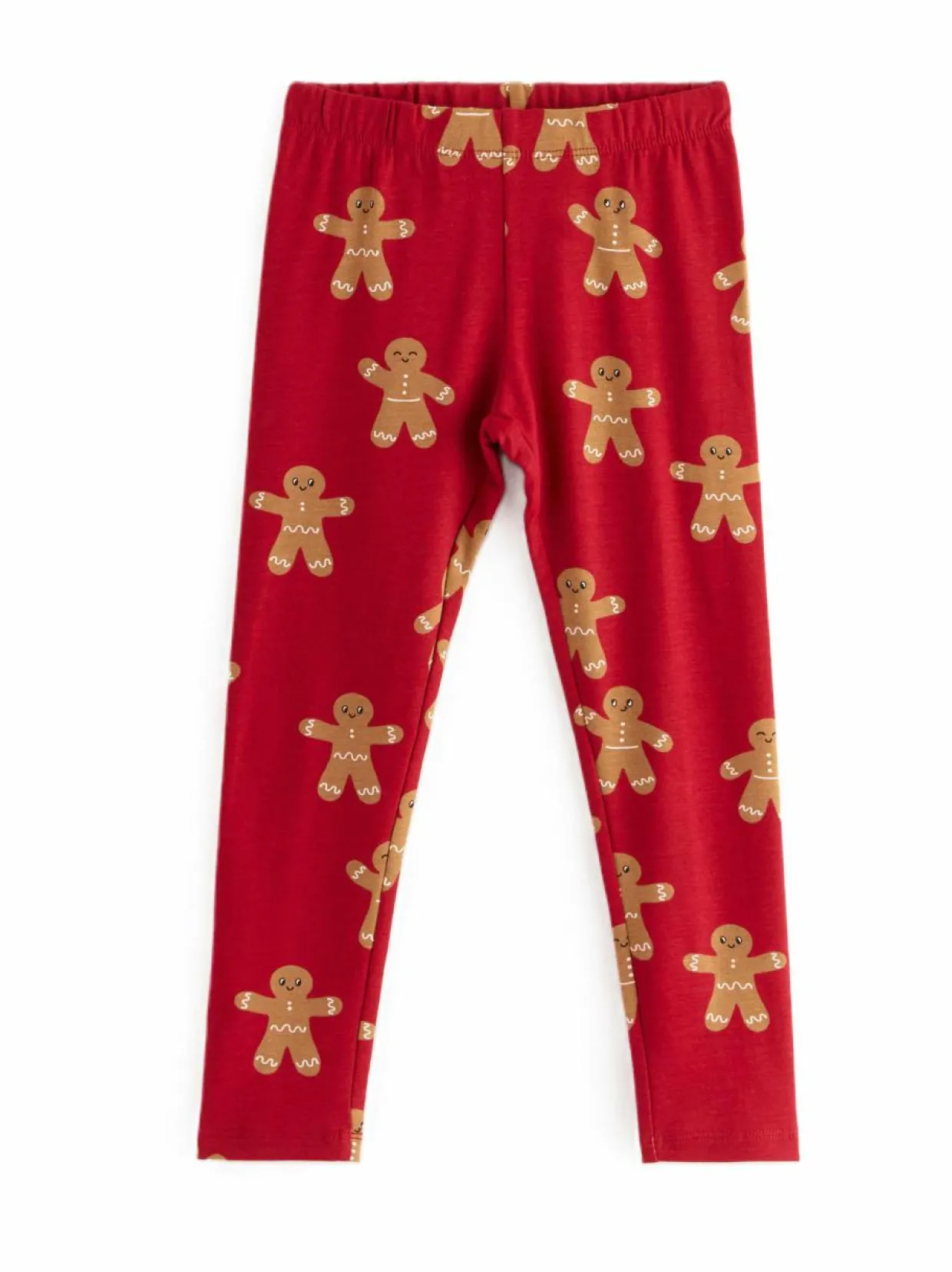 Pehmeästä puuvillatrikoosta valmistetut kuviolliset legginsit, joissa on harjattu sisäpuoli ja säädettävä vyötärö.
