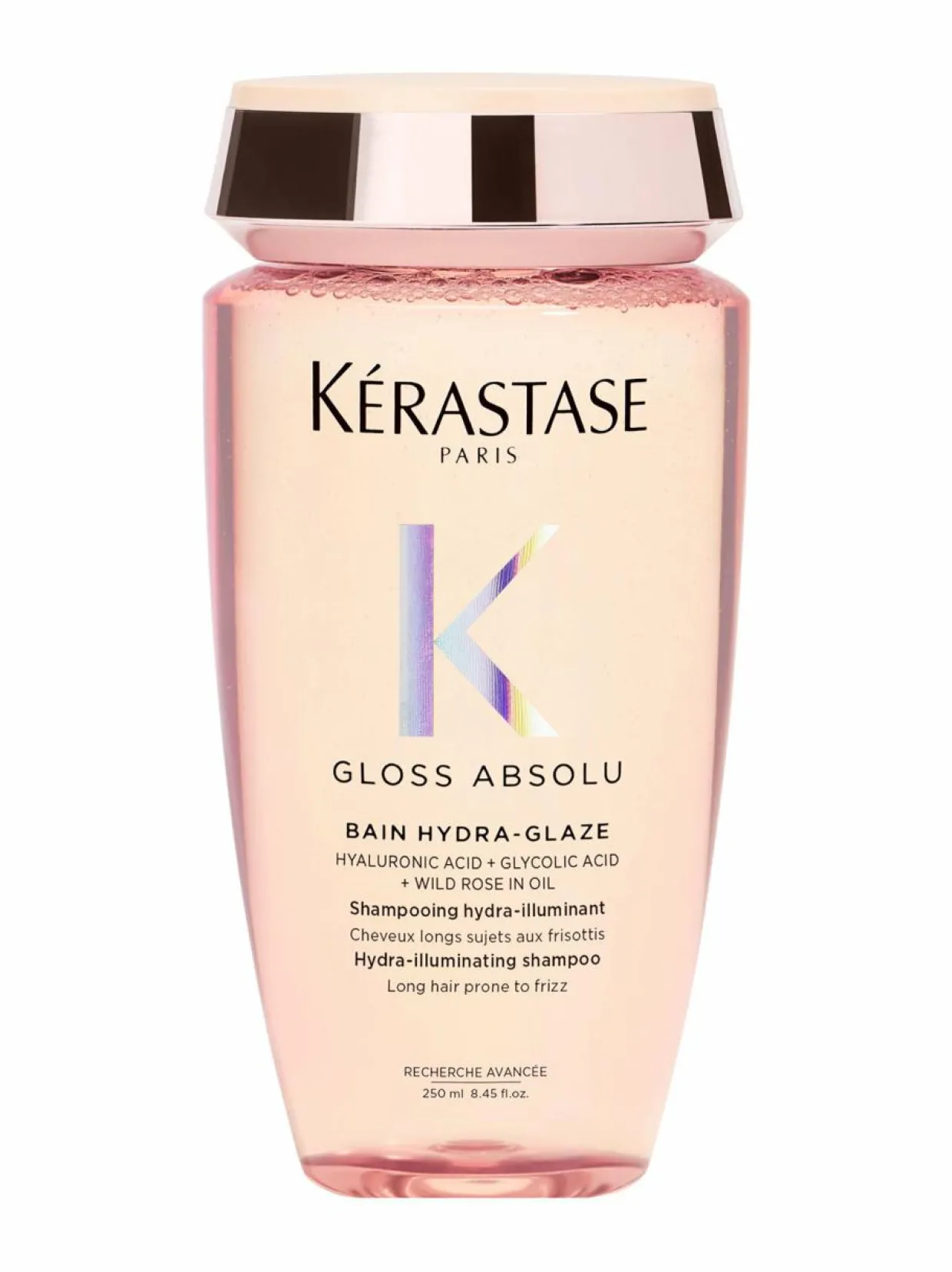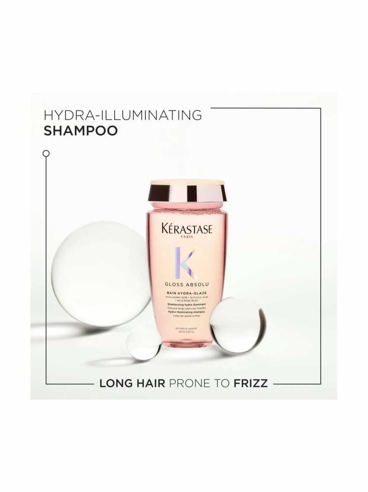 Kérastasen Bain Hydra-Glaze on kosteuttava ja kiiltoa antava shampoo pitkille, pörröisyyteen taipuvaisille hiuksille. Sen erityinen koostumus sisältää hyaluronihappoa, glykolihappoa ja ruusuöljyä, ja antaa lumoavat, kimmoisat ja kiiltävät hiukset.