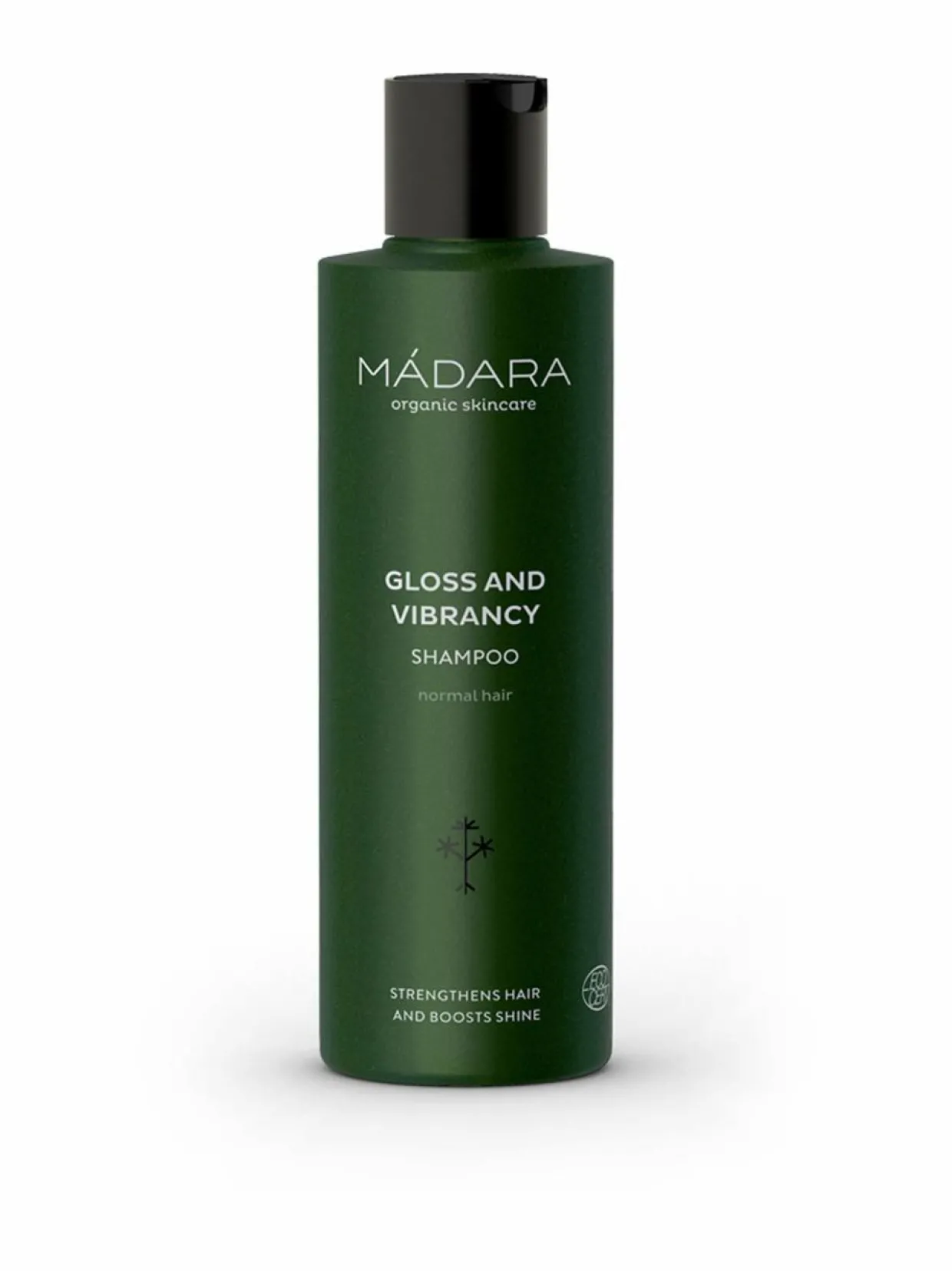Pohjoista koivu- ja karpalouutetta sisältävä Madara Gloss and Vibrance -kiiltoshampoo puhdistaa hiukset hellävaraisesti tuoden niihin suojaa ja voluumia. Hiuksista tulee vahvemmat, silkkisen tuntuiset ja luonnollisen kiiltävät.