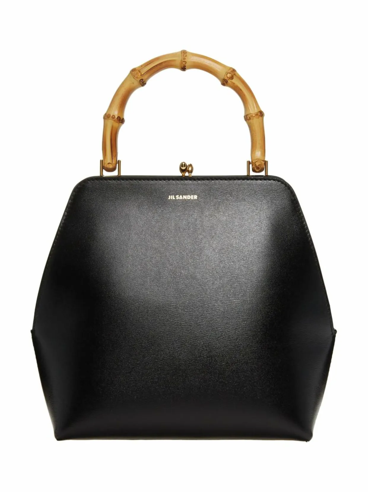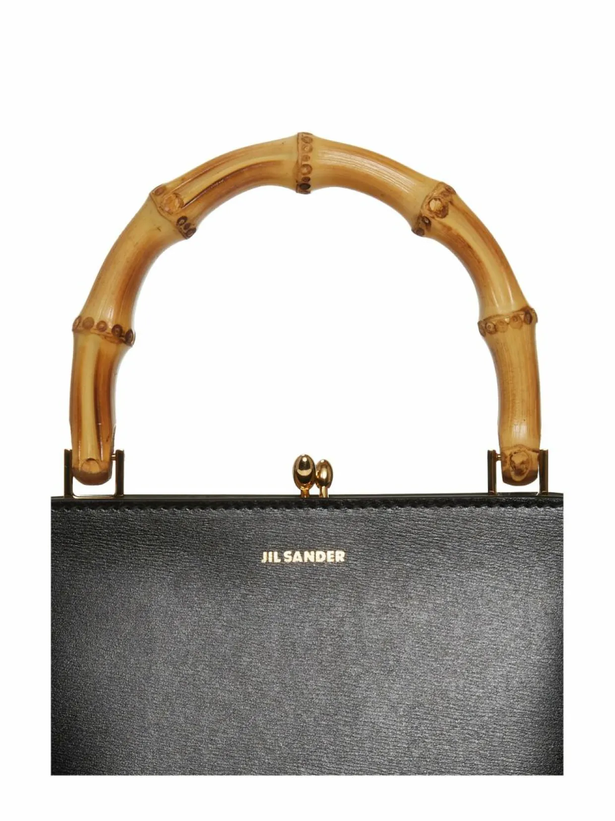 Jil Sanderin Goji Square Small Bamboo -laukku on kulmikas käsilaukku mattanahasta. Laukun bambusta valmistettu kantokahva ja kullansävyinen logoteksti antavat sille uniikin ilmeen.
