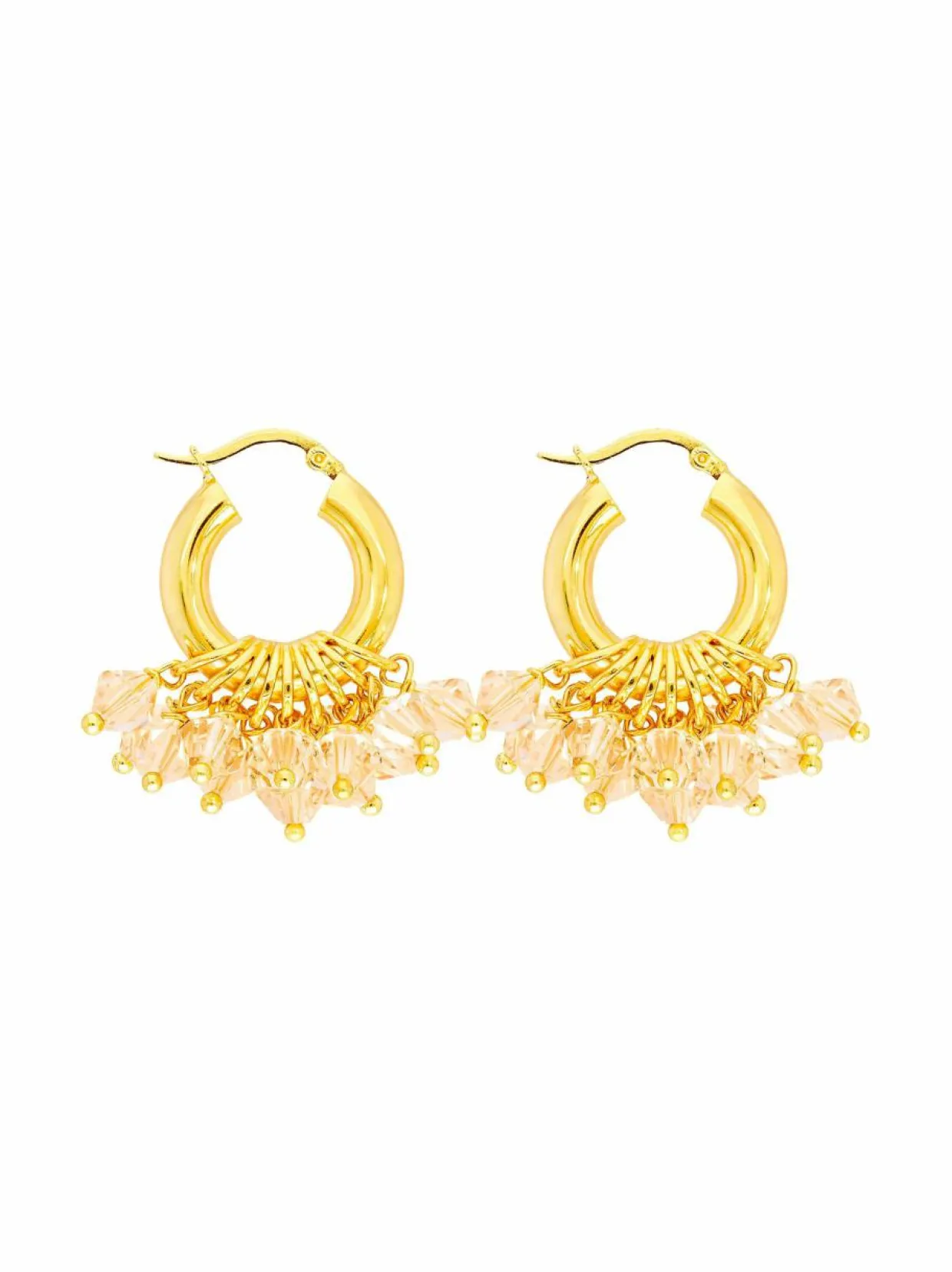 Tuotenumero172108085 MateriaaliKullattu hopea, lasi VäriCHAMPAGNE KokoOne size Avainsanatannele, korvakorut, korvarenkaat, korut, kullattu, hopea