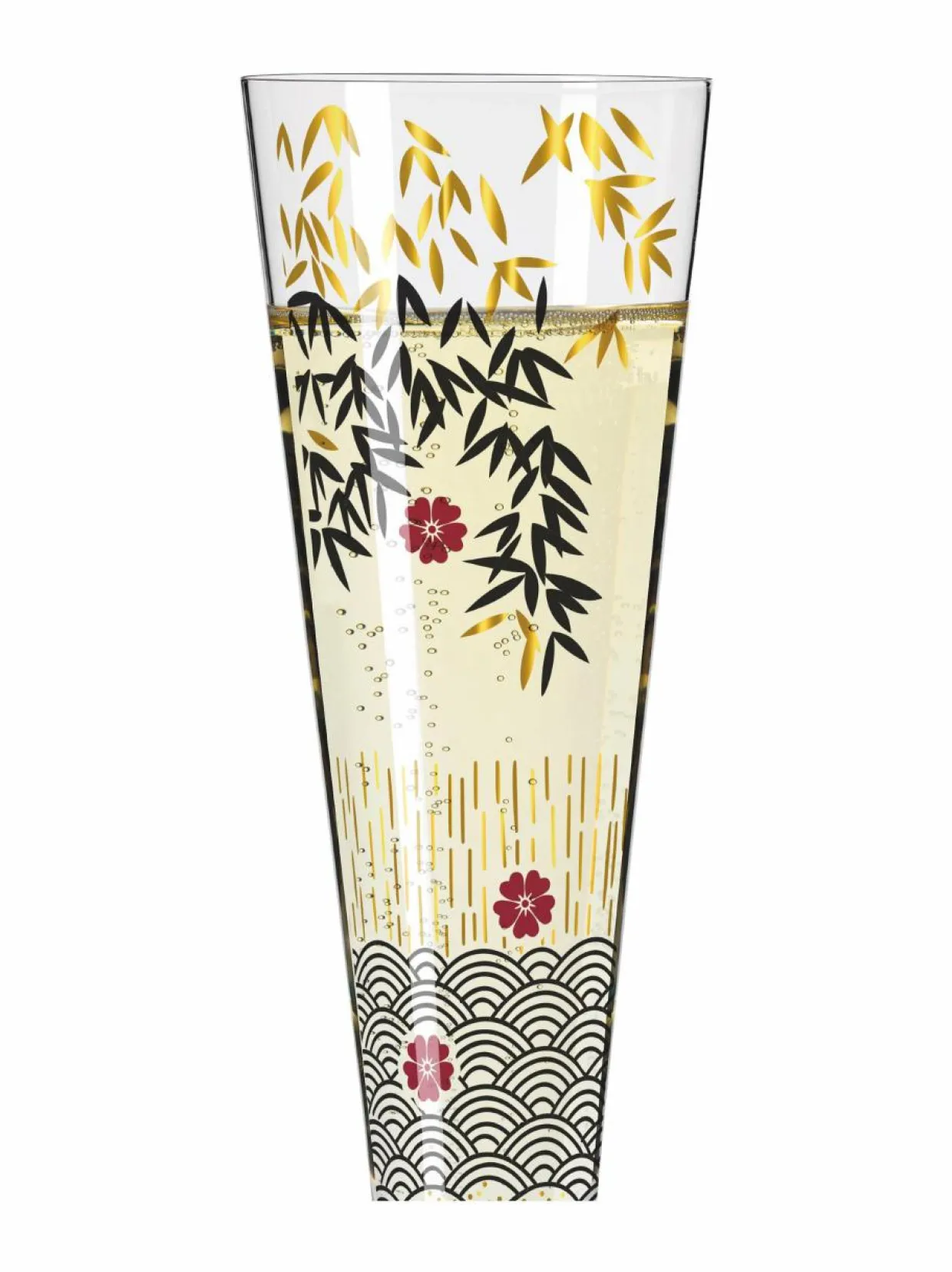 Sampanjalasi suunnittelija Kathrin Stockebrandin tyylikkäällä kuviolla. Ritzenhoff-merkin kuohuviinilasissa on elegantti muotoilu kristallista ja koristeet kullasta. Lasissa on samppanjaa sekä kuohuviiniä varten täydellinen pitkähkö muoto. Luo omalaatuinen ja elegantti kattaus. Toimitetaan kauniissa lahjapakkauksessa.