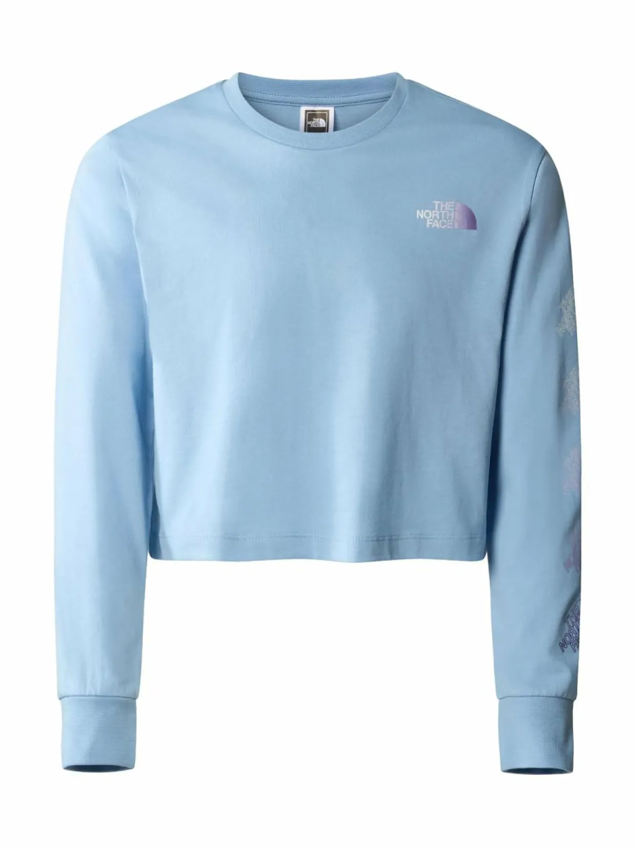 Uniikki cropped-pituinen paita The North Facelta. Rinnan ja hihan logot on toteutettu liukuvärisillä printeillä.