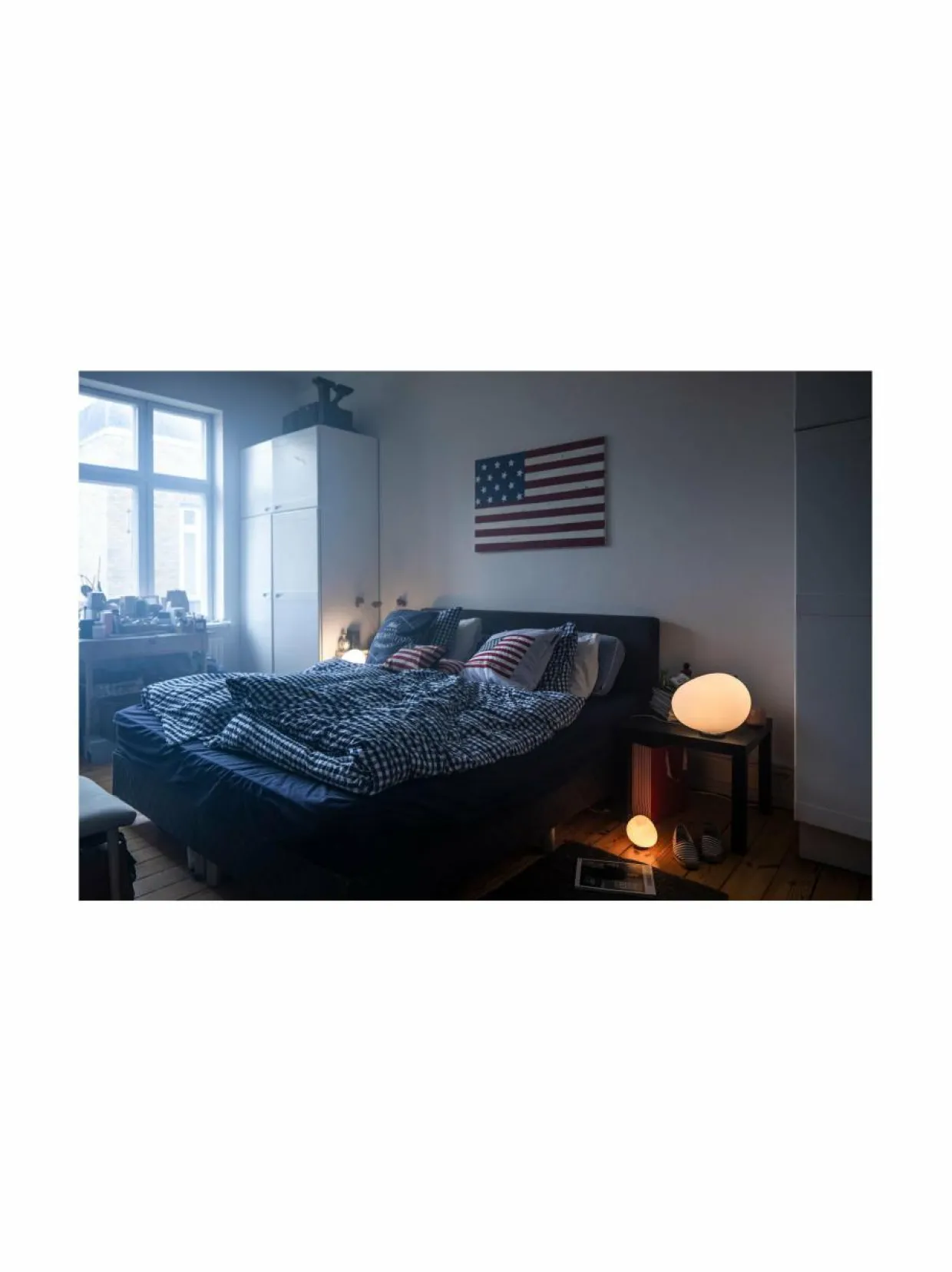 Gregg Table Midi -pöytävalaisin on Roberto ja Ludovica Palomban suunnittelema ainutlaatuinen valaisin, joka muistuttaa jokea pitkin kulkevaa kivenmuodostumaa. Valaisimen ulkonäkö muuttuu riippuen katsojan näkökulmasta. Valkoisen, käsin puhalletun ja happoetsatun lasi tuottaa lämpimän ja tasaisen valon, joka luo korkean koristeellisen vaikutuksen. Valaisimen koko on 21 x 17 x 17 cm. Valaisimen runko on valmistettu polykarbonaatista ja varjostin on valmistettu käsin puhalletusta happoetsatusta lasista.