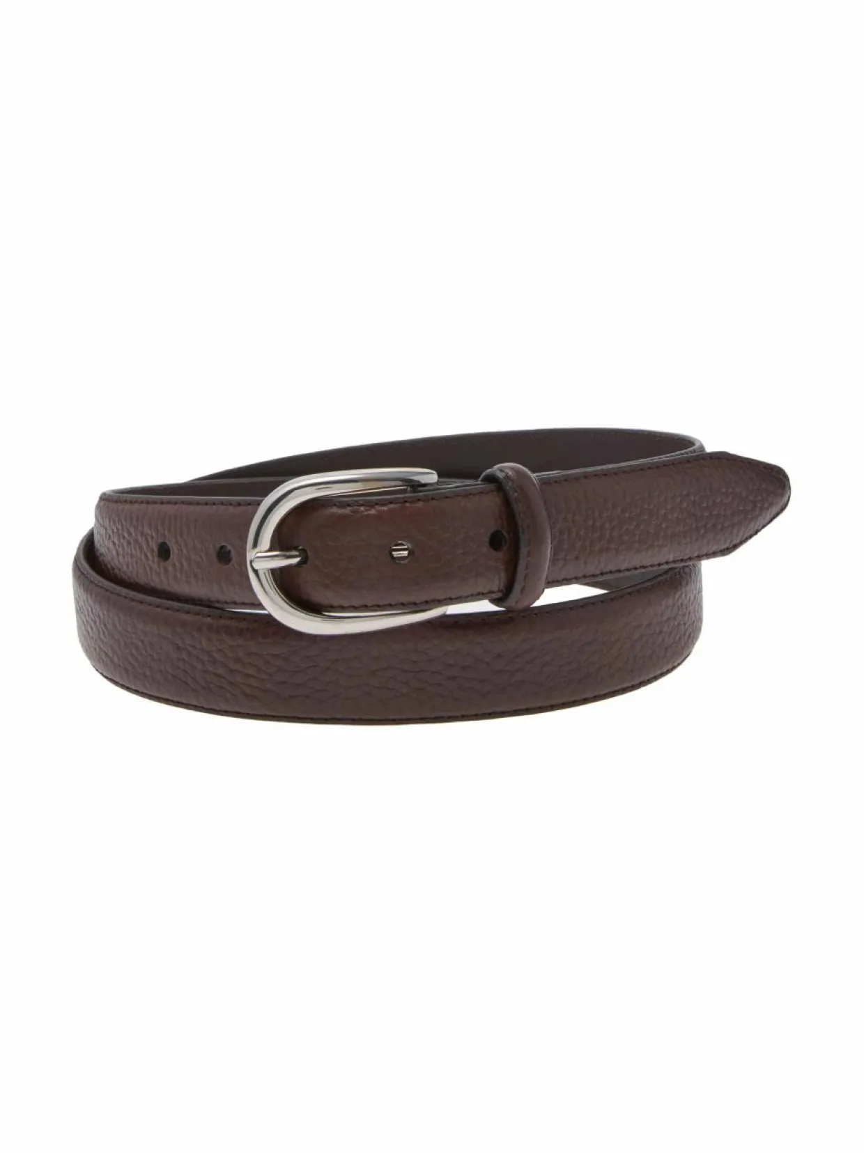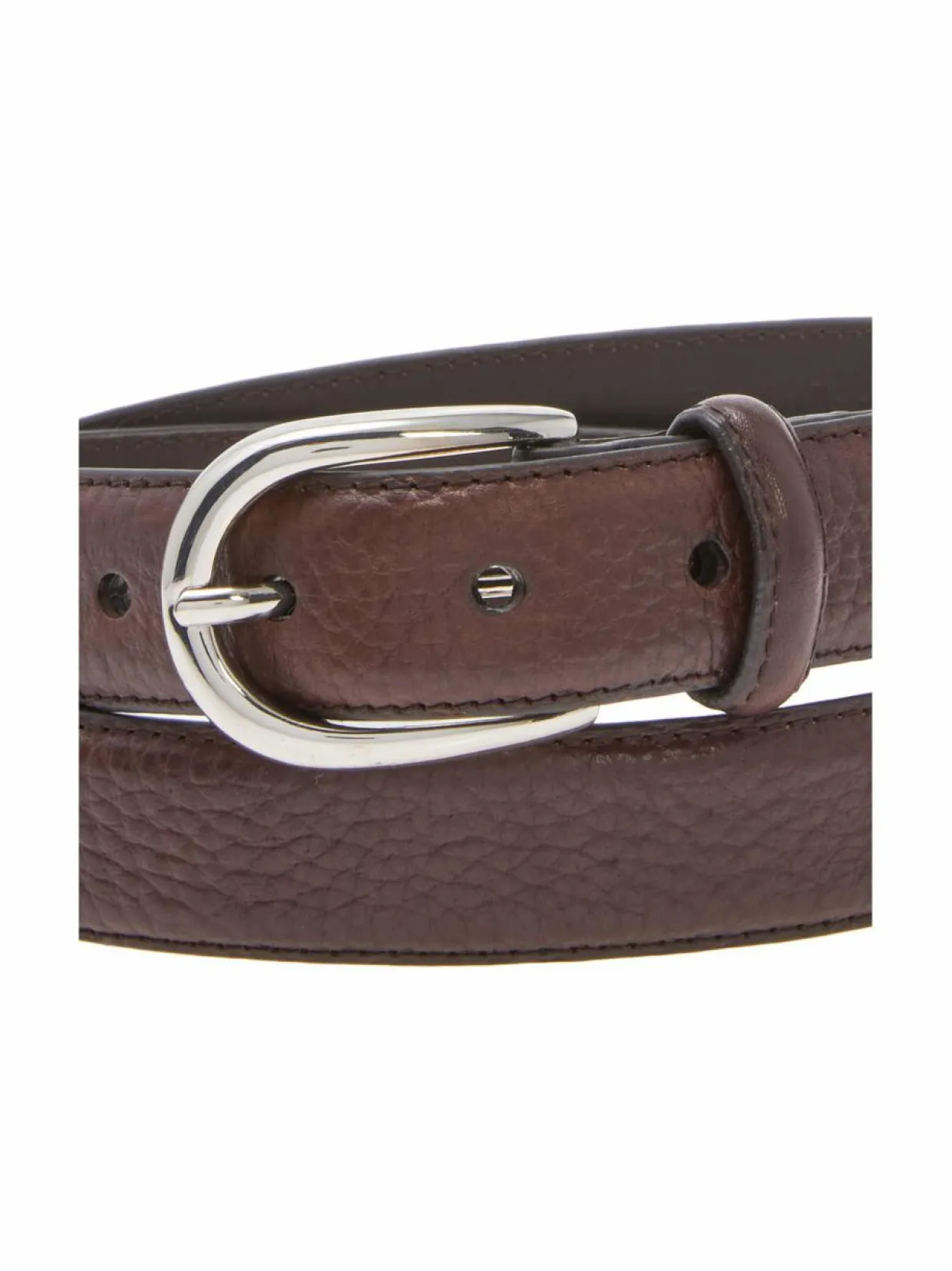 Loake Harry-kapea nahkavyö viimeistelee asukokonaisuuden tyylikkäästi. Klassisessa vyössä on pyöreän muotoinen metallisolki. Materiaali on pintakuvioitua nahkaa.