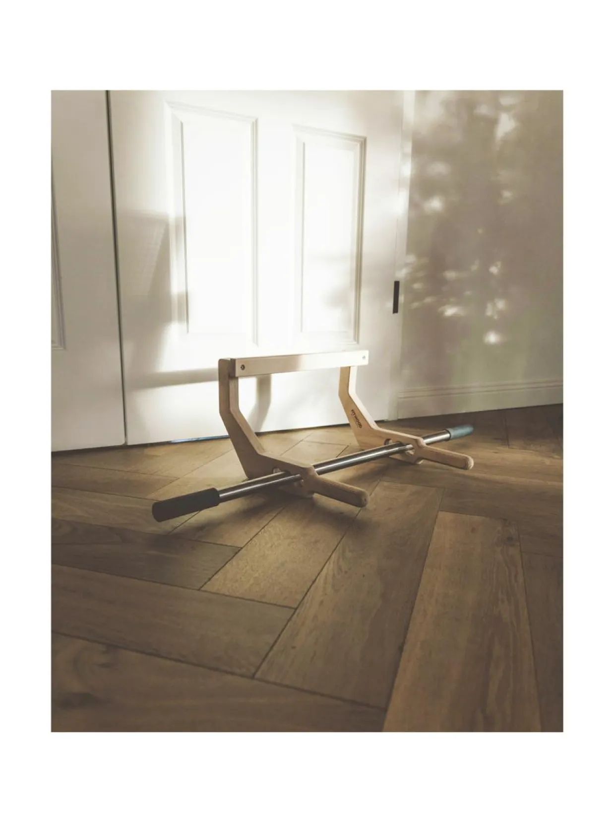 HAVU leuanvetotankoa ei tarvitse pysyvästi asentaa ovenkarmiin, vaan sitä voidaan käyttää milloin tahansa myös lattialla. Leuanvetotanko ei siis vahingoita ovenkarmia, eikä se ole tiellä, kun ovi suljetaan. Ruostumatonta terästä olevan tangon päät on peitetty luonnonkumisilla hihoilla ovenkarmien ja sen viereisten seinien suojaamiseksi.